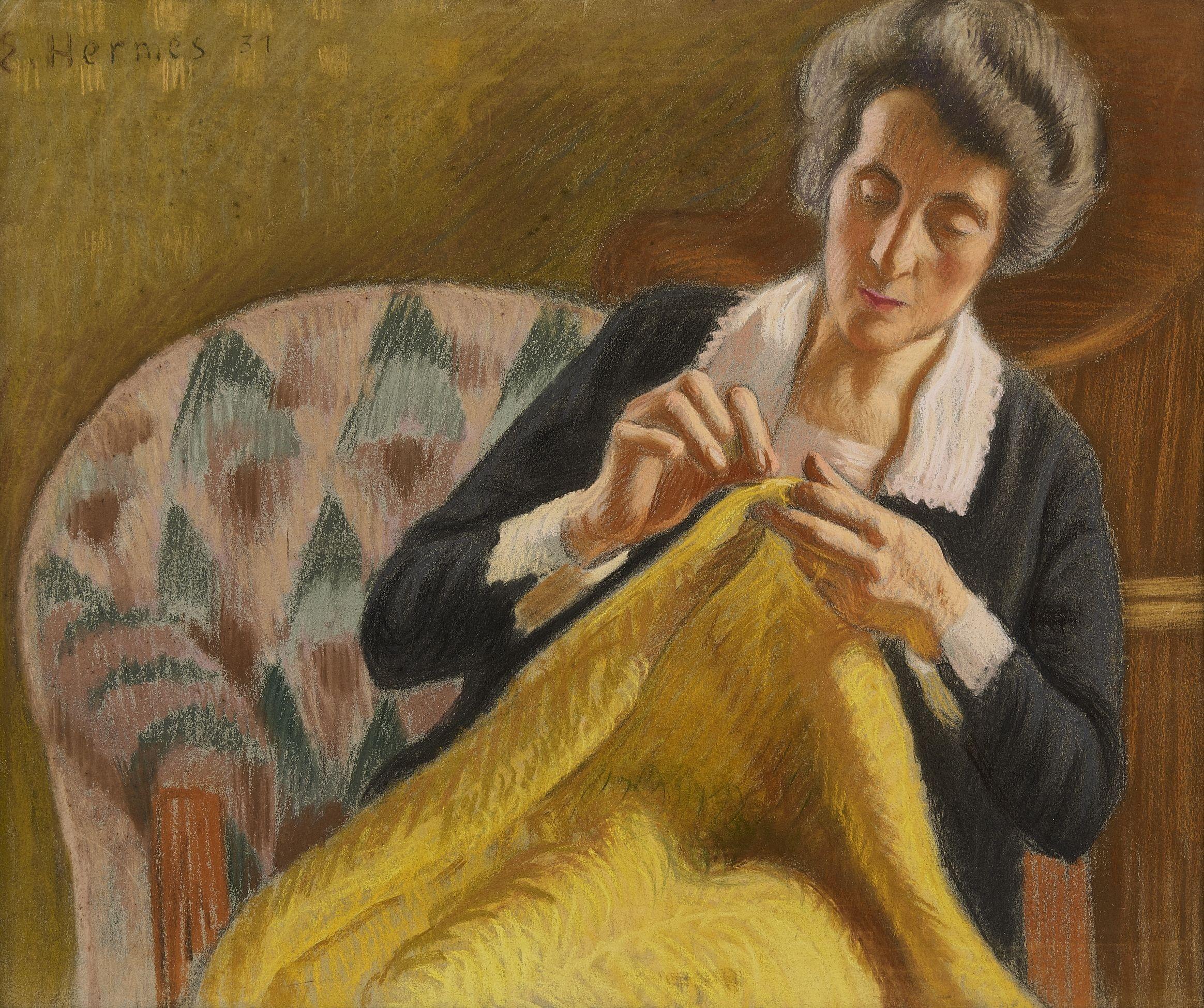La couture, pastel sur papier, signé et daté 31, 48x58 cm