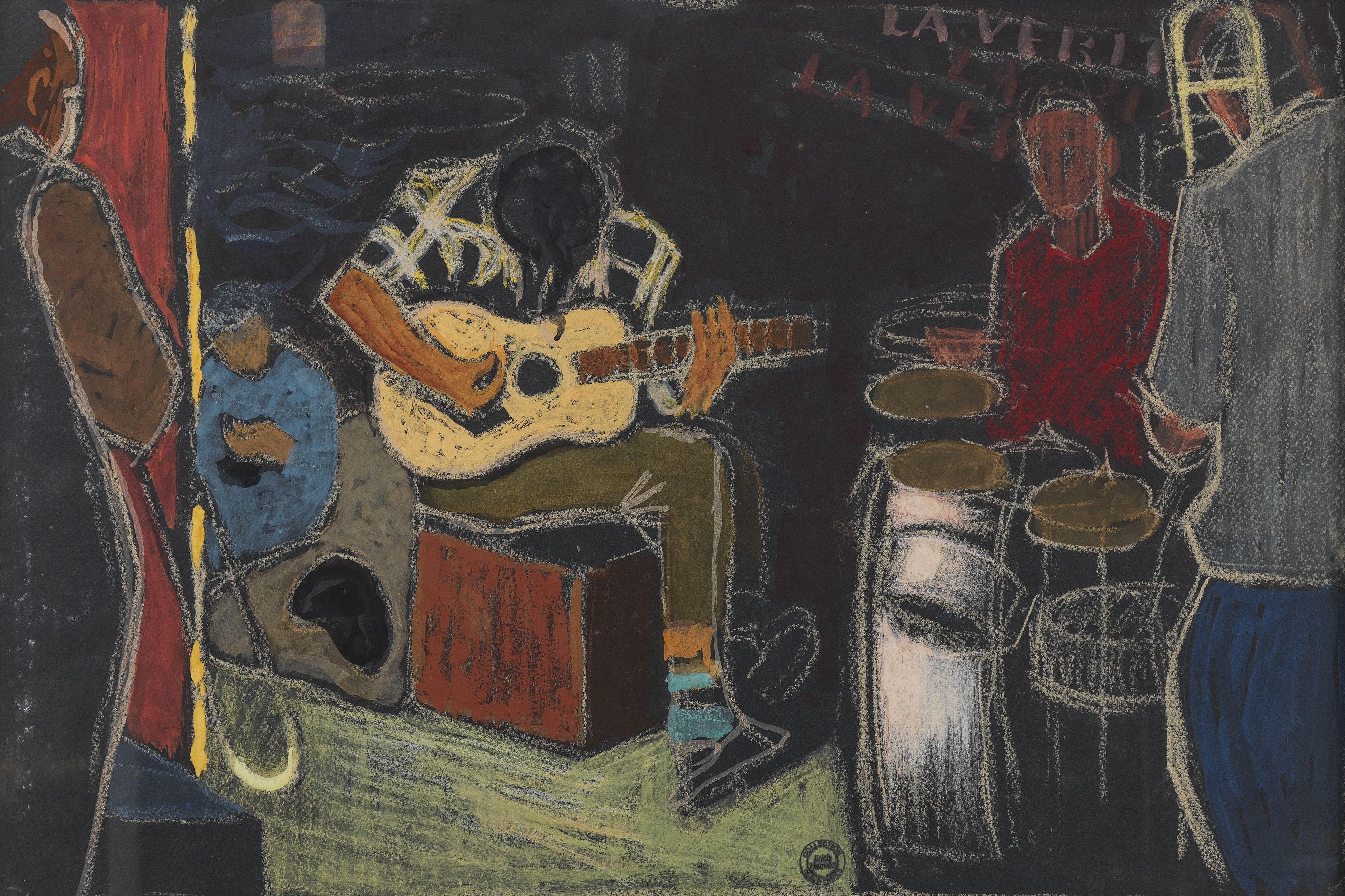 Le professeur et son élève, pastel et gouache sur papier, signé,...