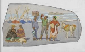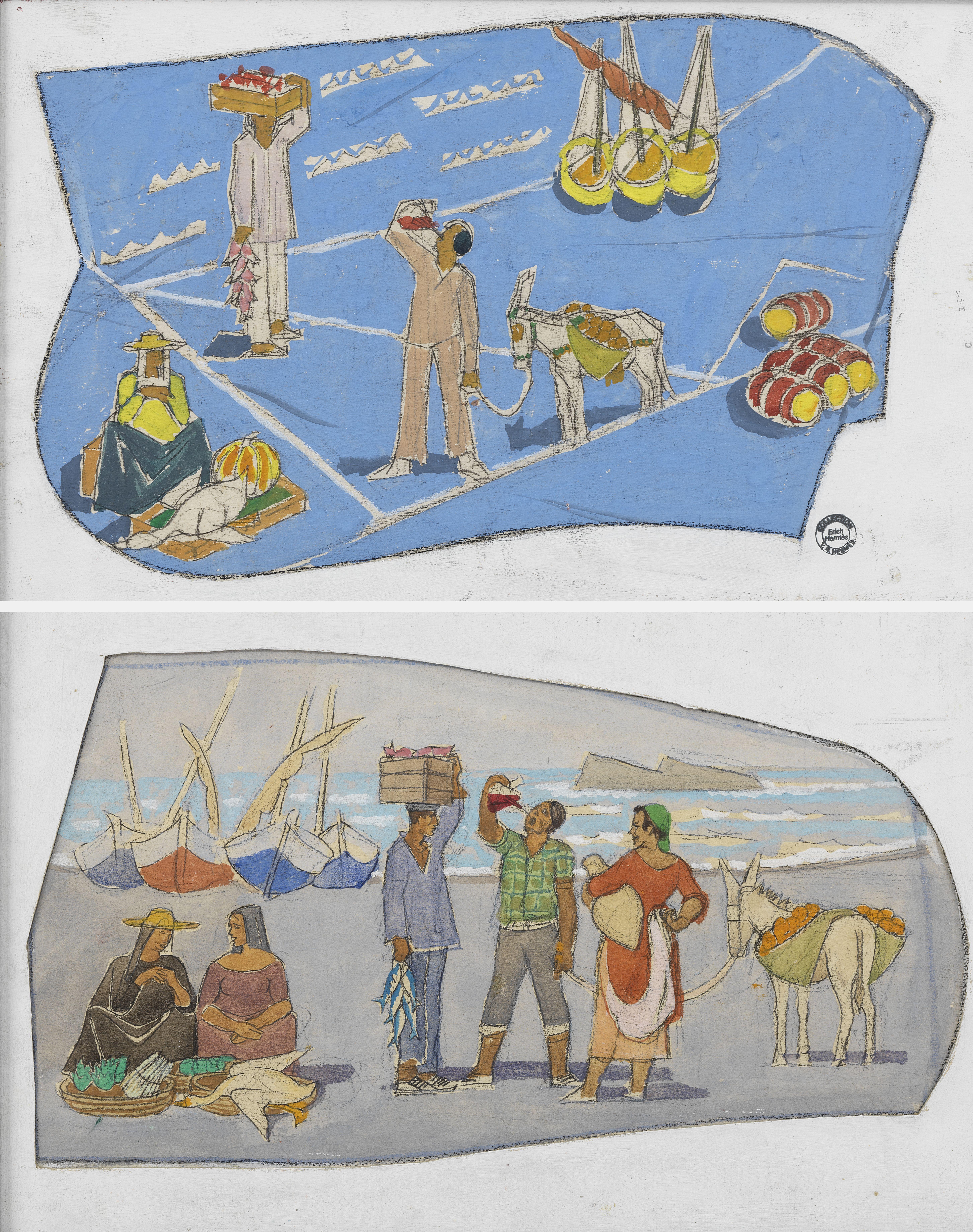 Etude double face pour scènes avec pêcheurs, fusain et gouache sur papier, portant le cachet de la collection Erich Hermès, 34x52 cm