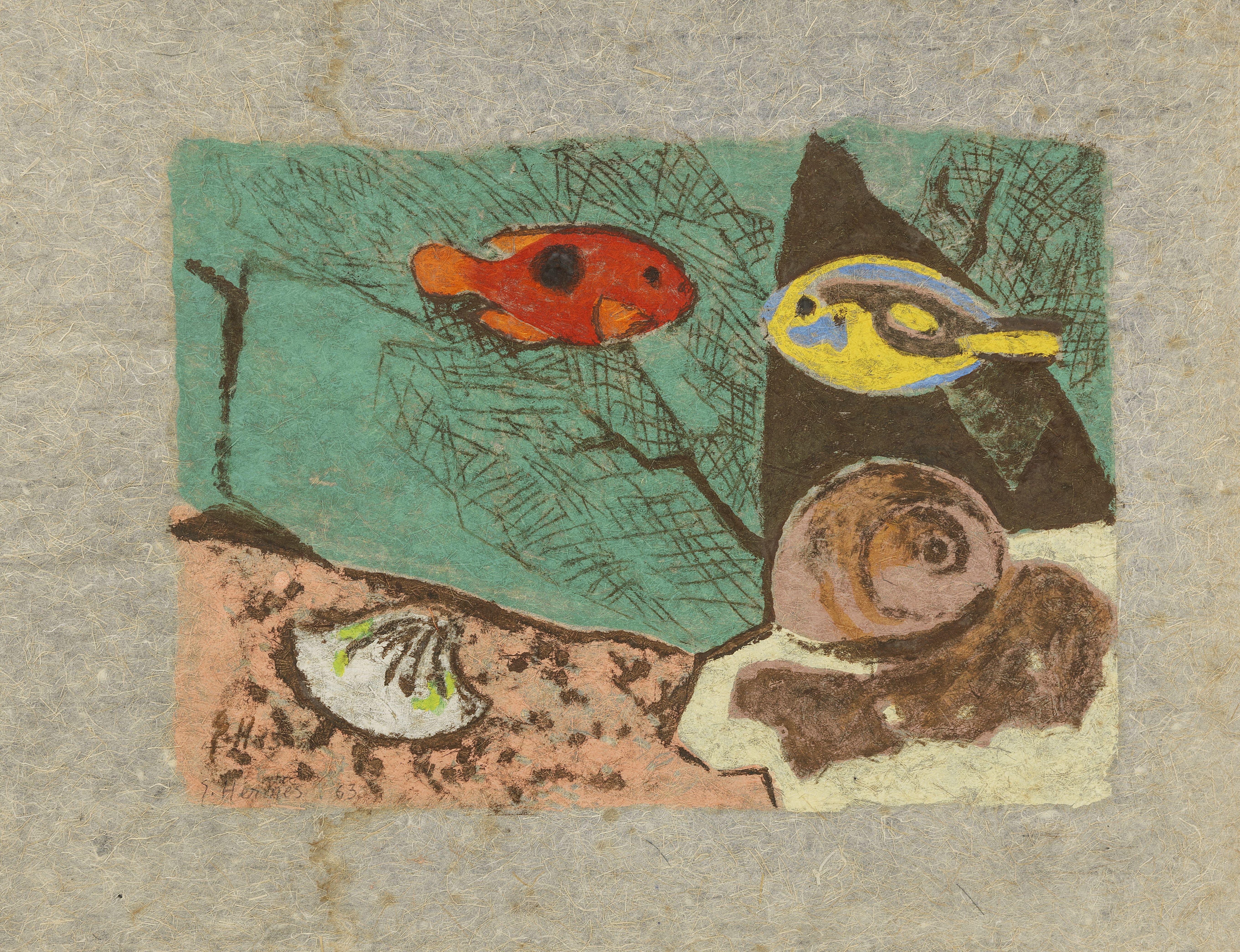 Sur le fond de la mer, monotype sur papier japon, signé et daté 63, 30x43 cm