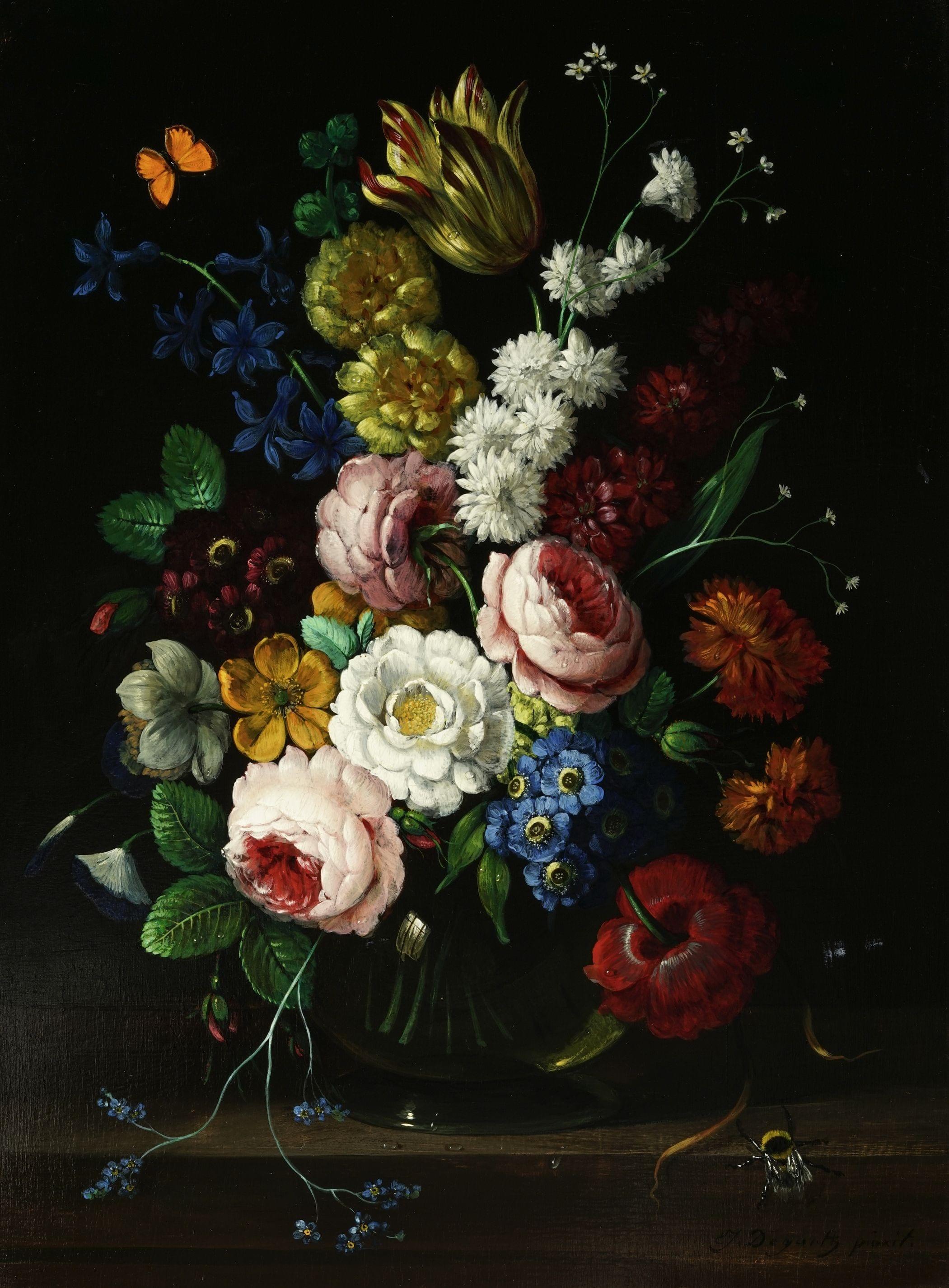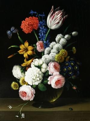 Bouquet de fleurs, huile sur panneau, 47x37 cm