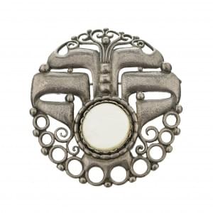 Broche moderniste à décor de volutes et flammes stylisées entour...