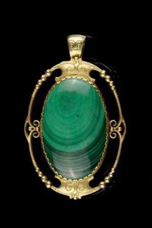 Broche pendentif ovale Art Déco à motif de volutes et perlettes...