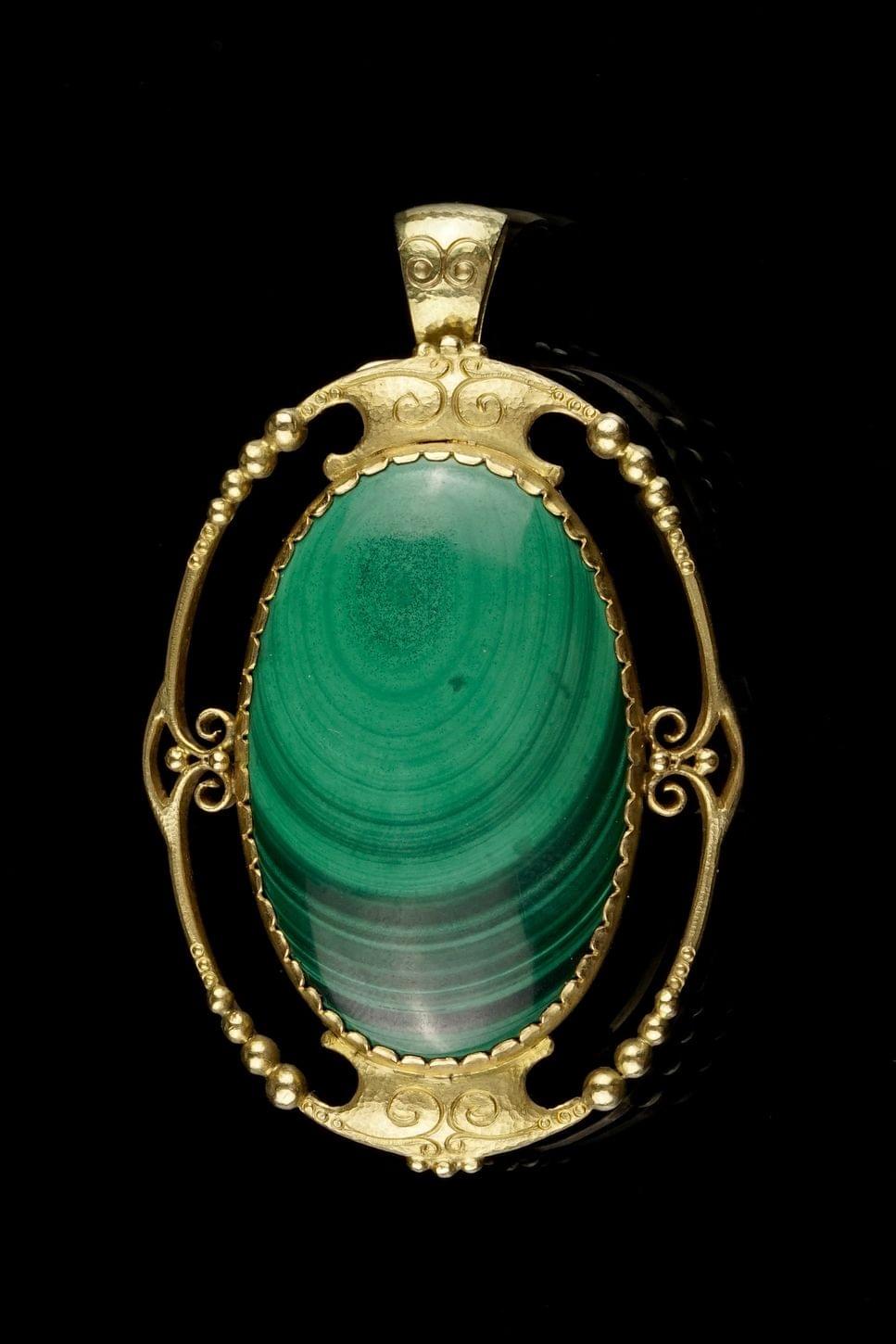 Broche moderniste à décor de volutes et flammes stylisées entour...