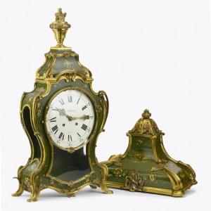 Bois laqué vert à décor de fleurs, bronze doré, H 108 cm