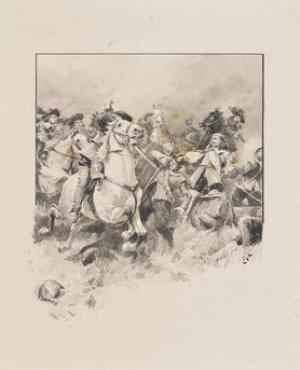 Une bataille au XVIIe s, lavis d'encre, monogrammé, 23x18 cm