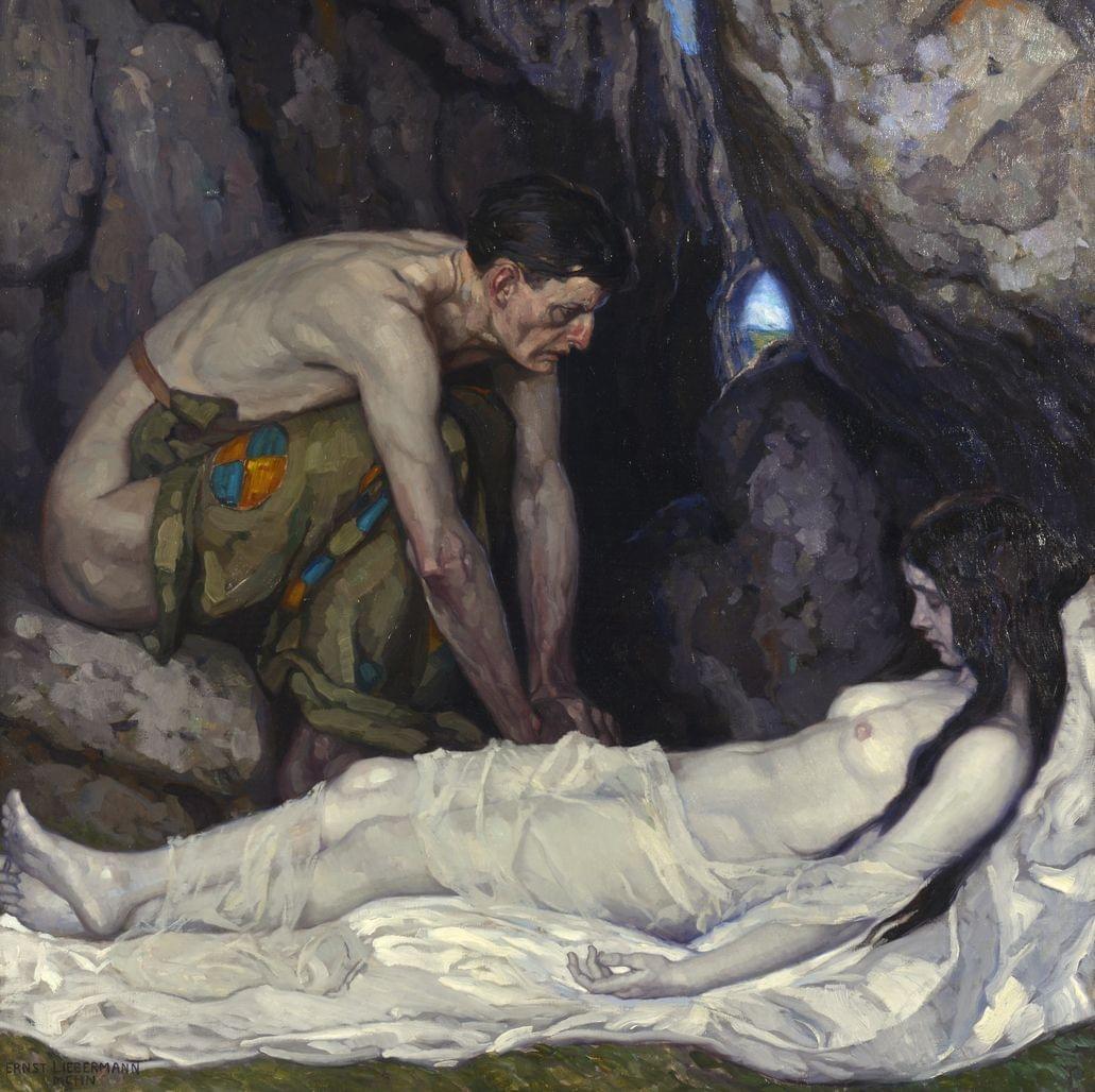 Atala et l'indien Chactas, huile sur toile, signée, 145x145 cm