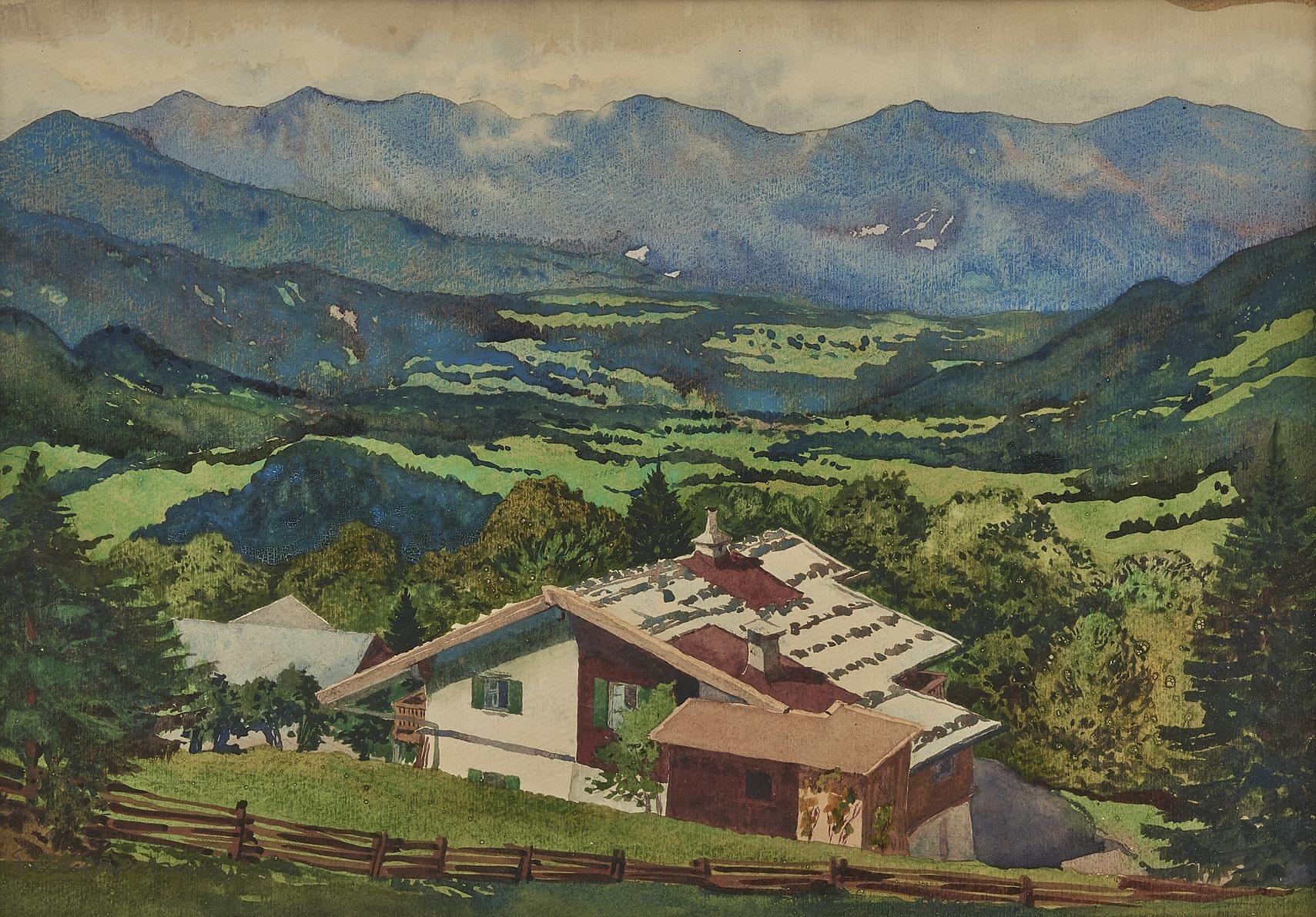Paysage orientaliste, aquarelle et gouache sur carton, 55x79cm