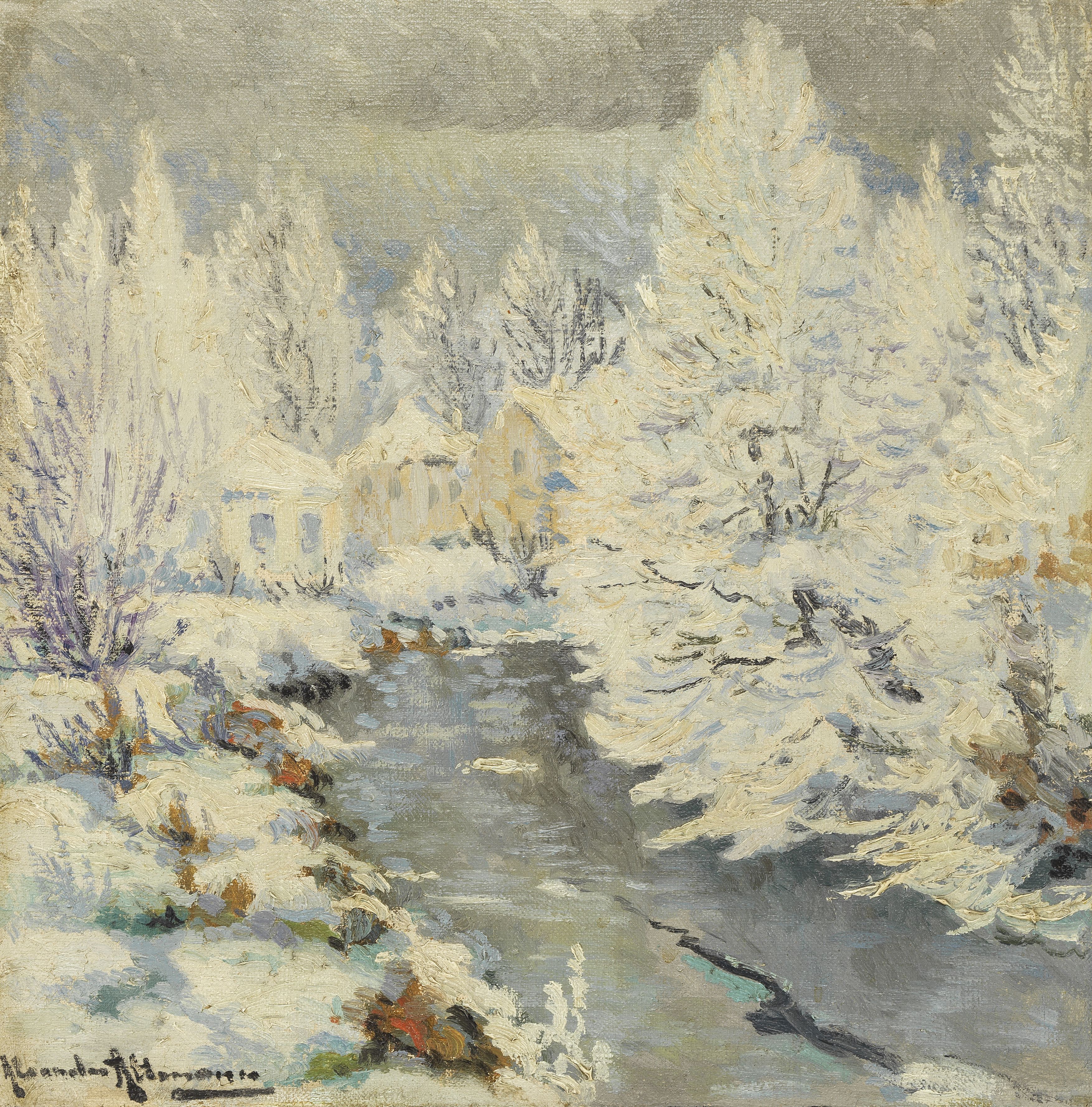 Paysage d'hiver, huile sur toile, 64x64 cm