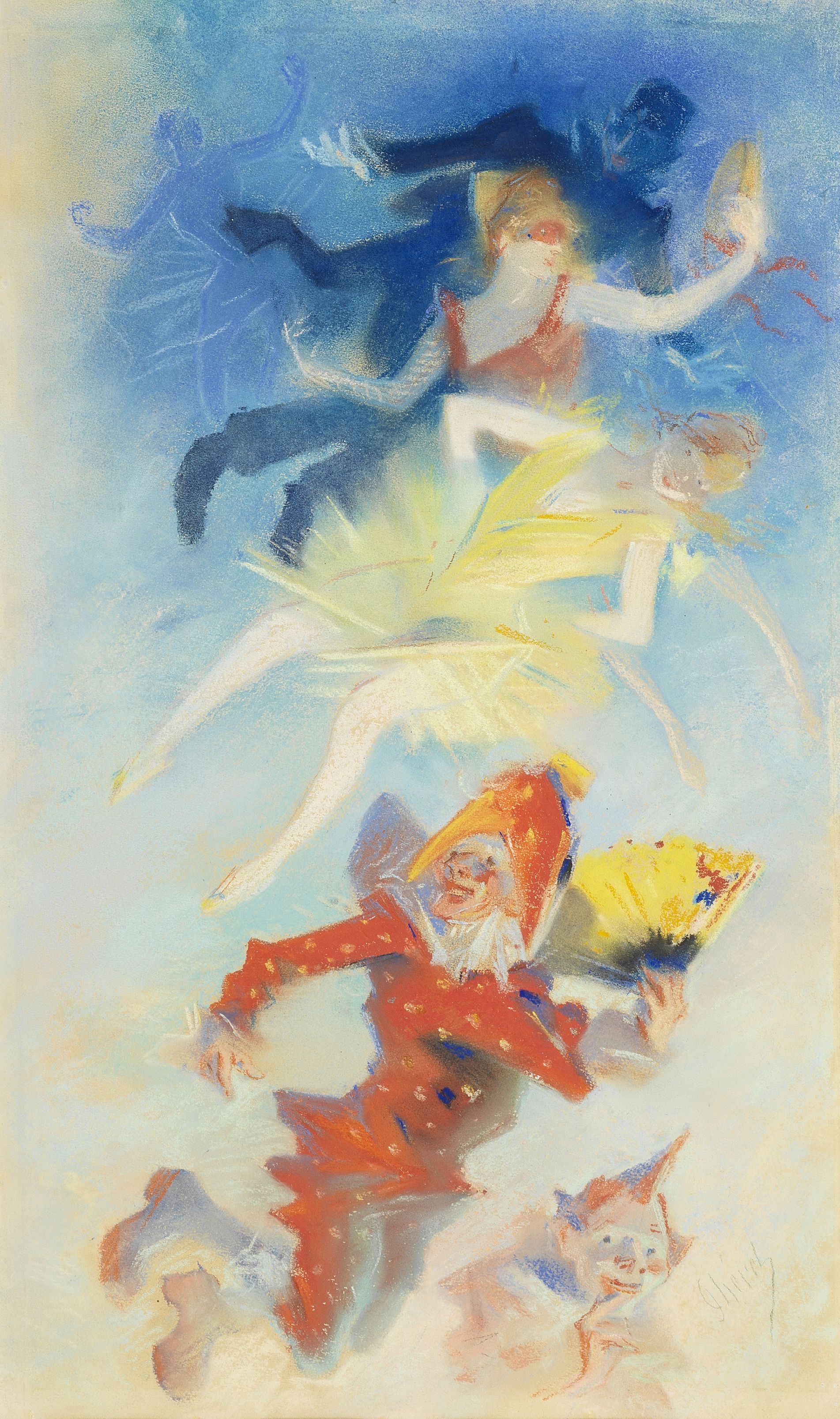 Arlequin et Colombine, pastel sur papier, signé, 55x33 cm