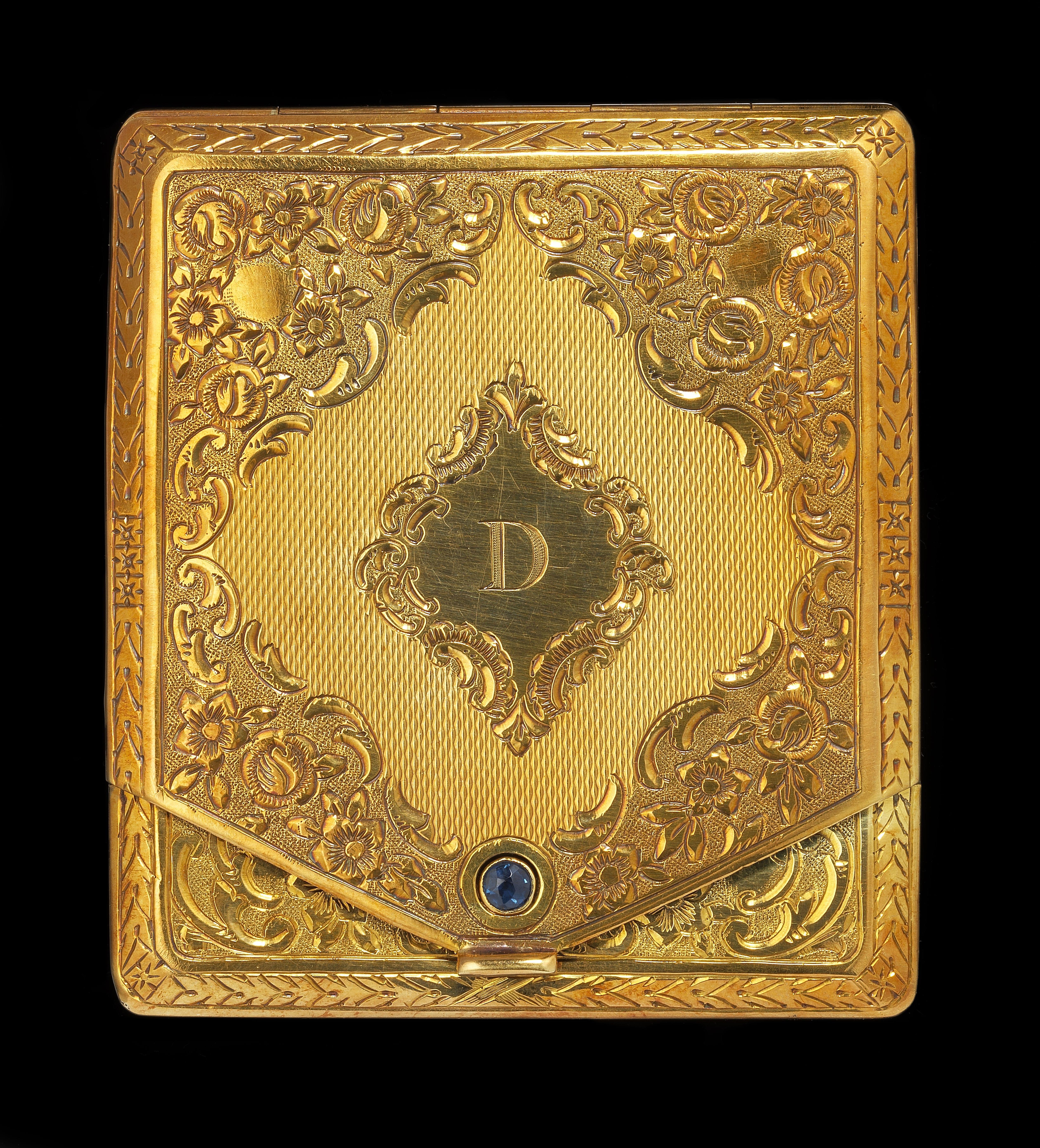 3538. Etui à allumettes ciselé à décor floral et monogrammé D