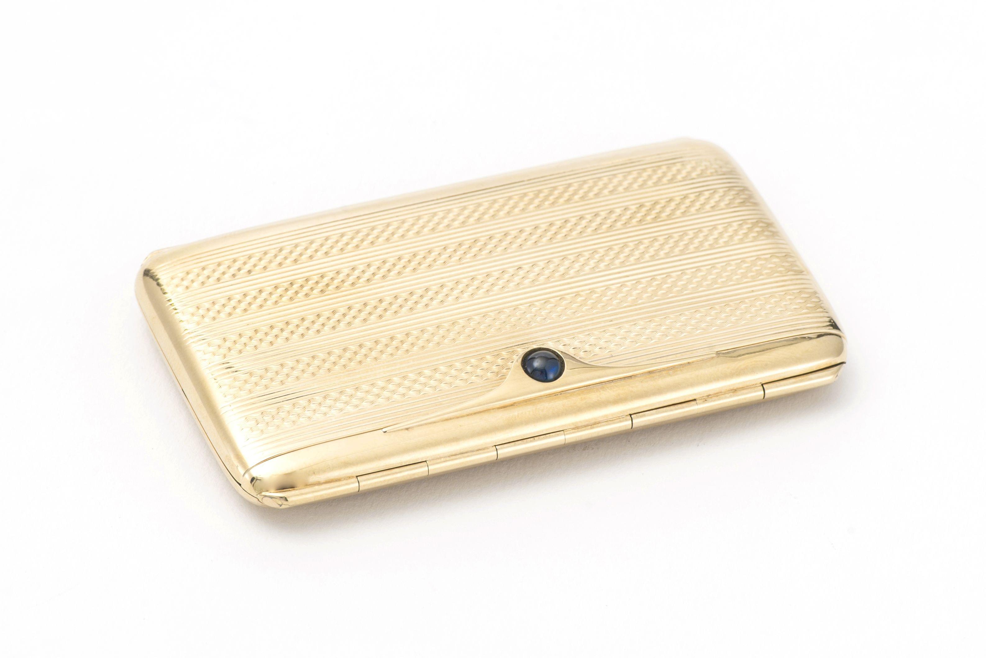 90. Etui à cigarettes ciselé, fermoir serti d'un saphir