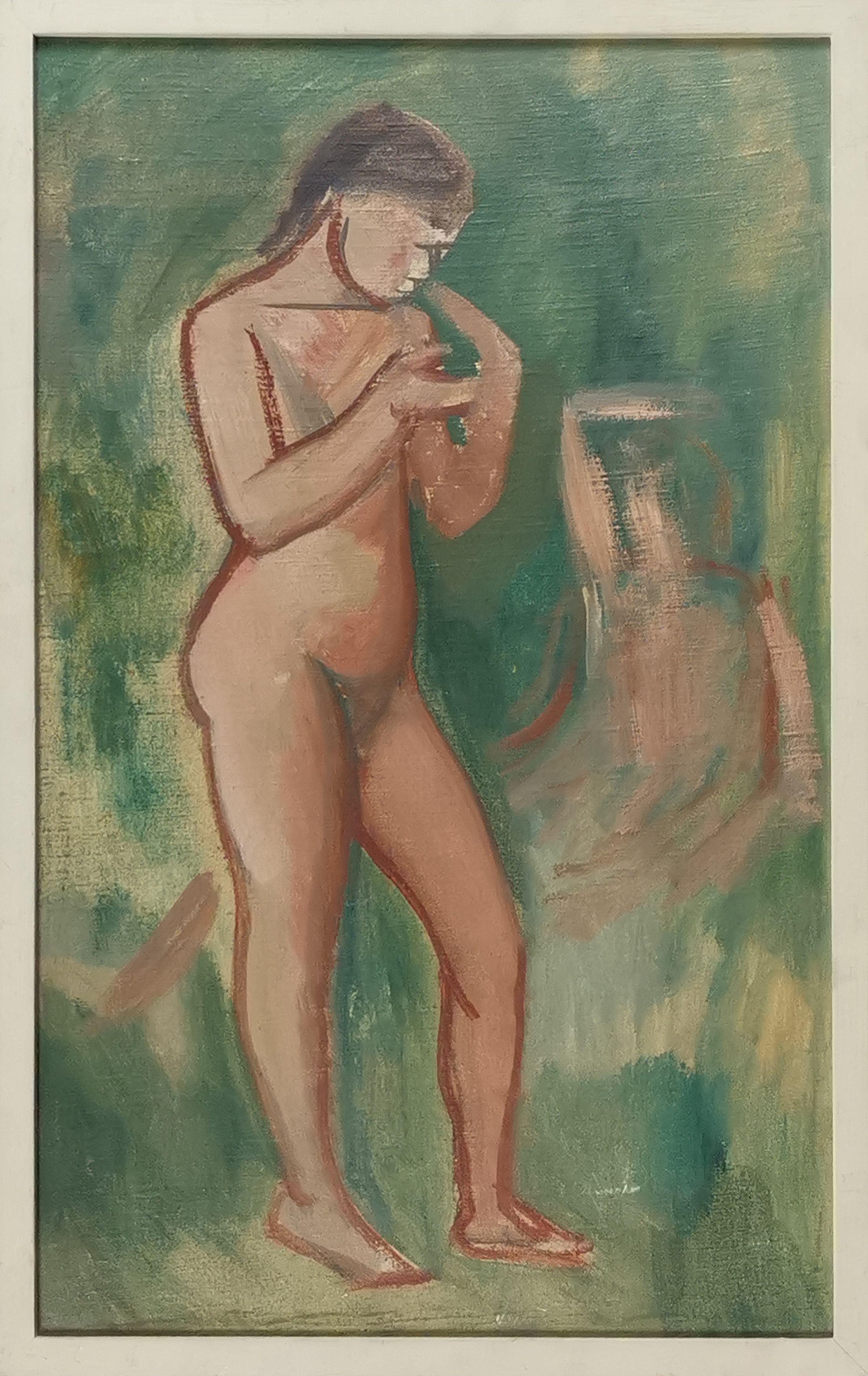 Jeune femme nue, huile sur pavatex, identifiée au dos, 55x34 cm