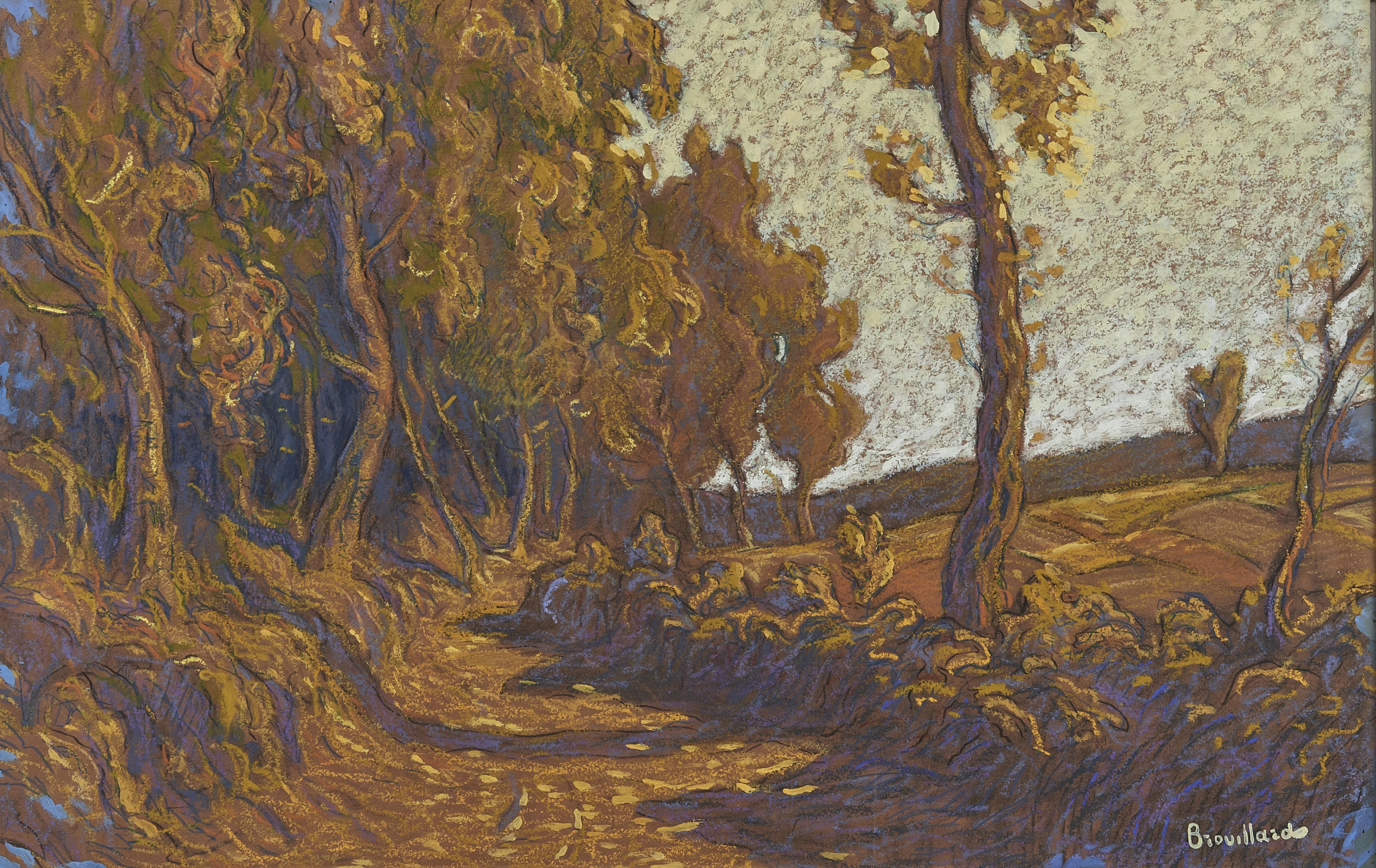 Les arbres, pastel et crayon sur papier, signé, 40x64 cm