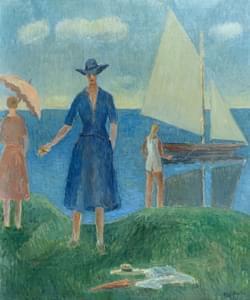 Elégantes en bord de mer, huile sur toile, 55x46 cm