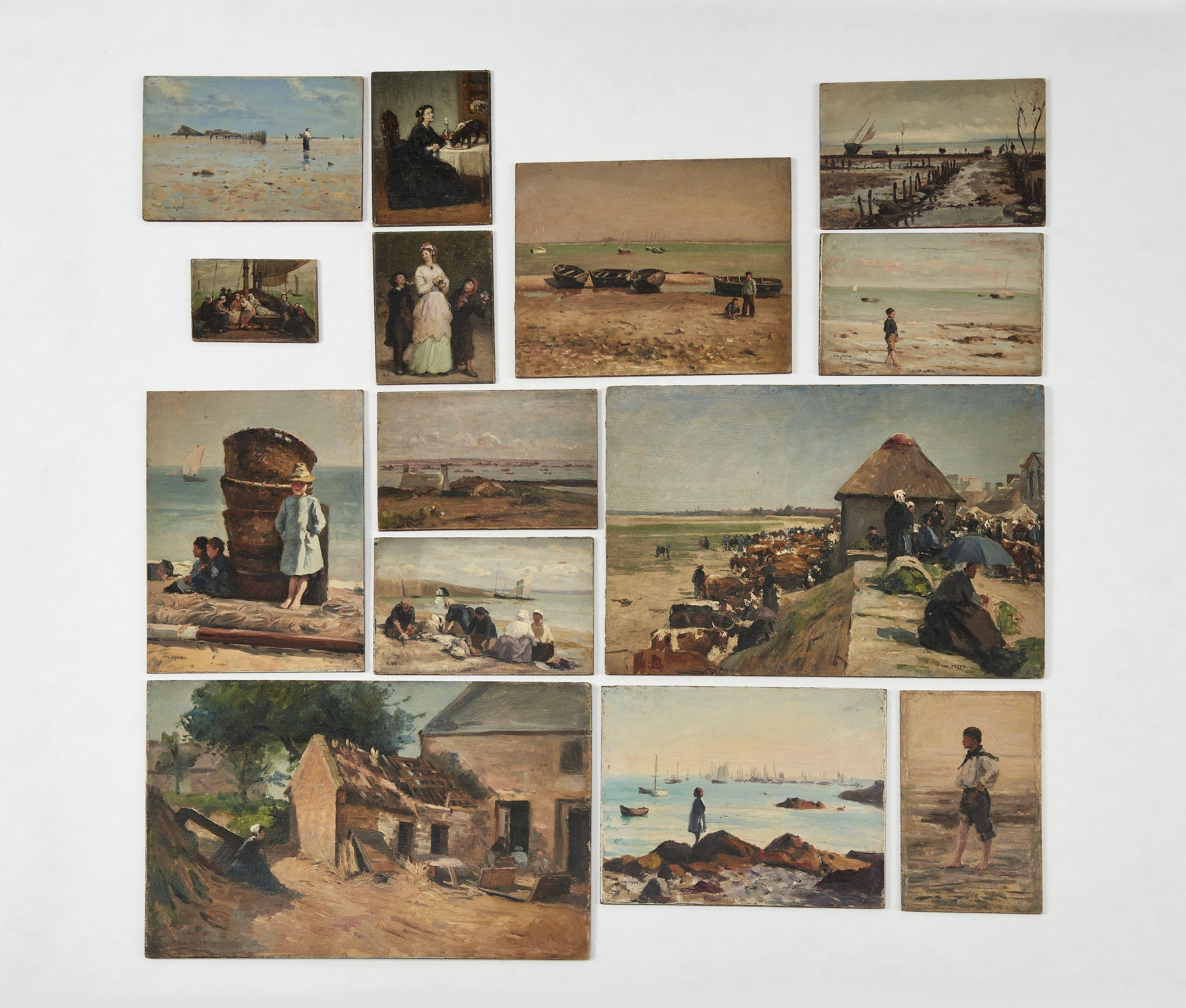 Les lavandières, huile sur papier marouflée, 29x42,5 cm