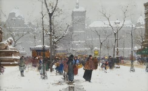 Place du Châtelet sous la neige, gouache sur papier, 19x30,5 cm