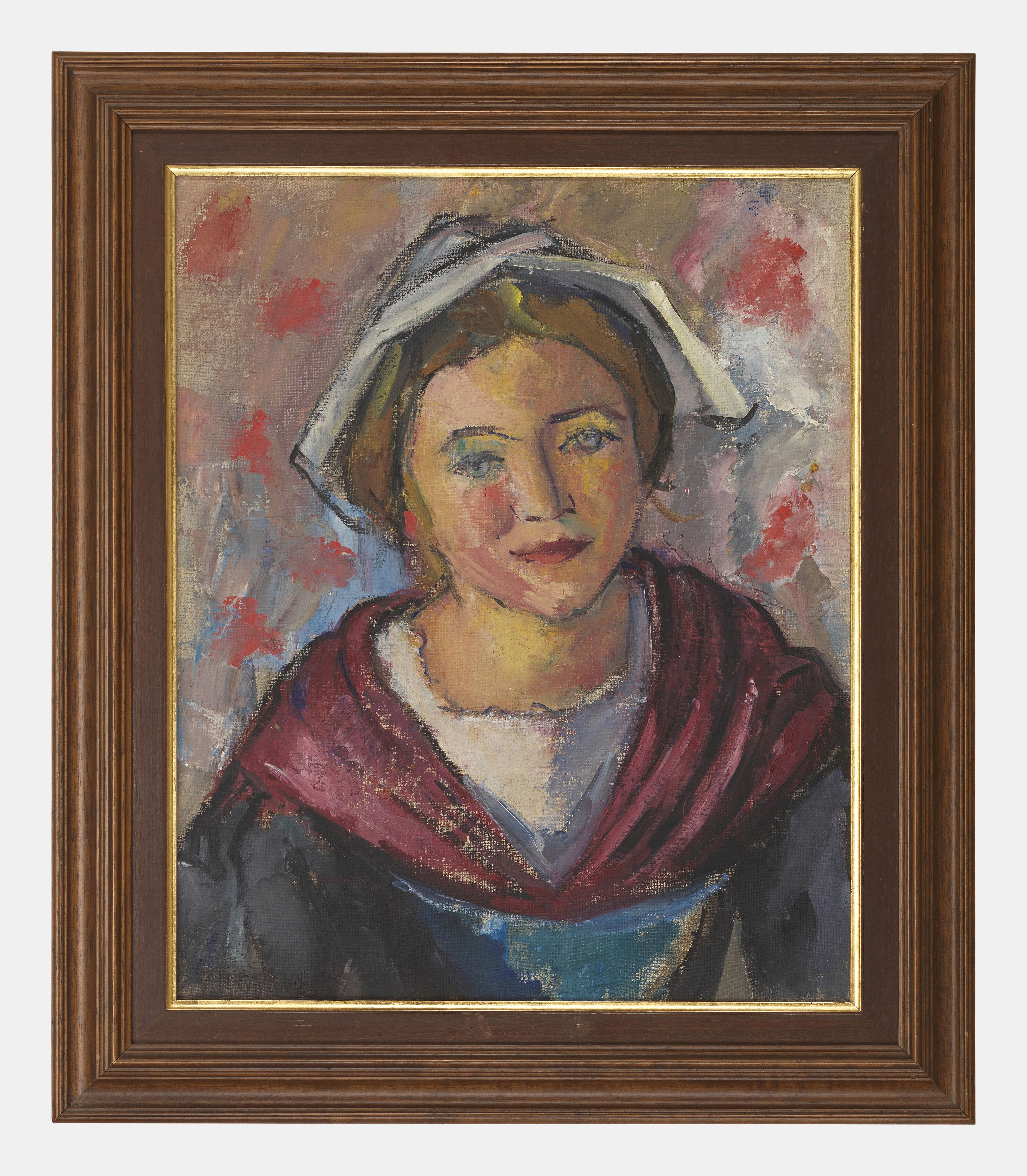 Navire au port, huile sur toile, 46x38 cm. Provenance: ancienne...