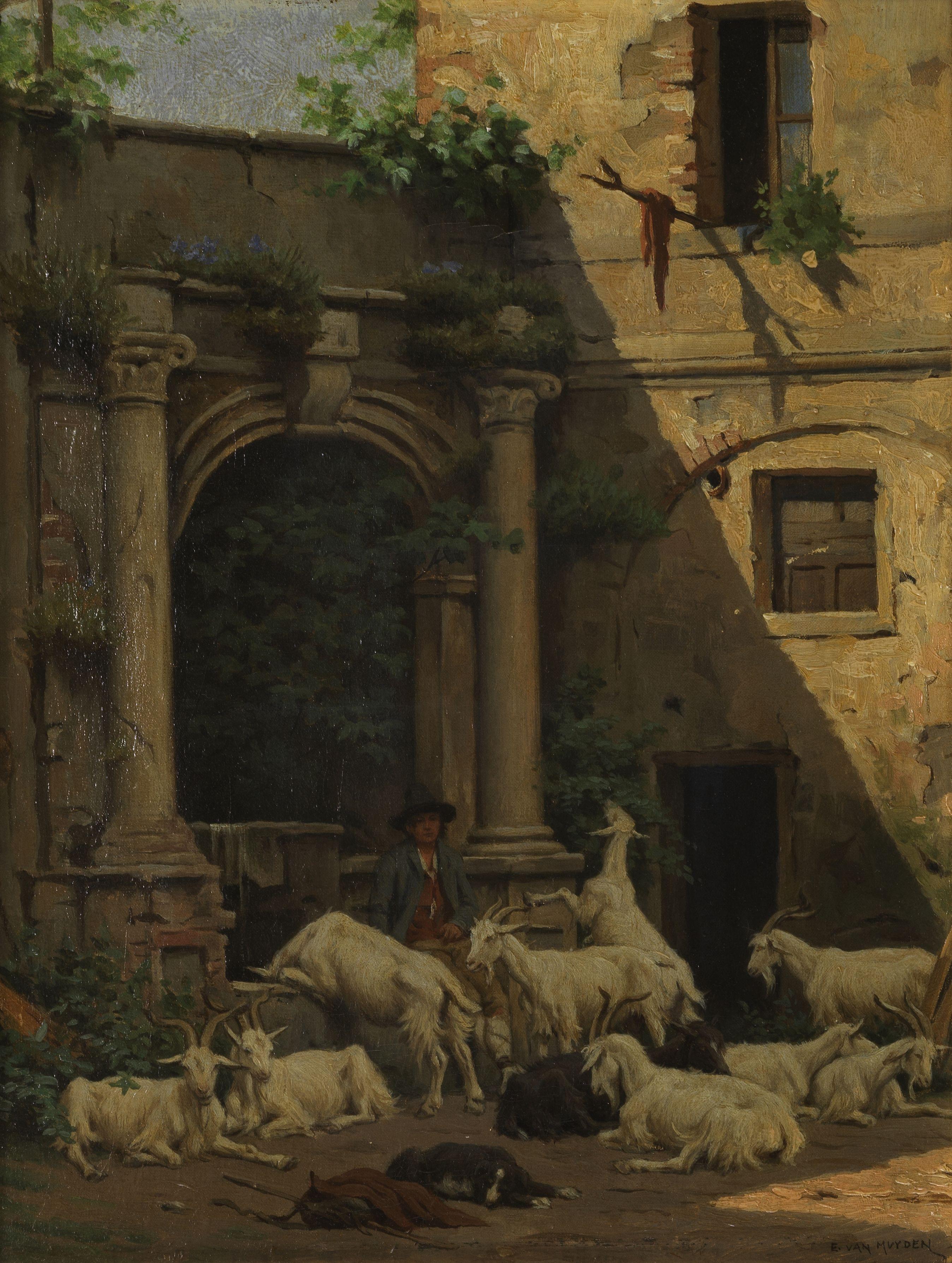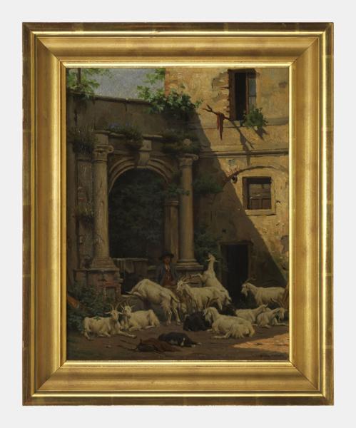 Gardien de chèvres dans les ruines, huile sur toile, 32x24 cm