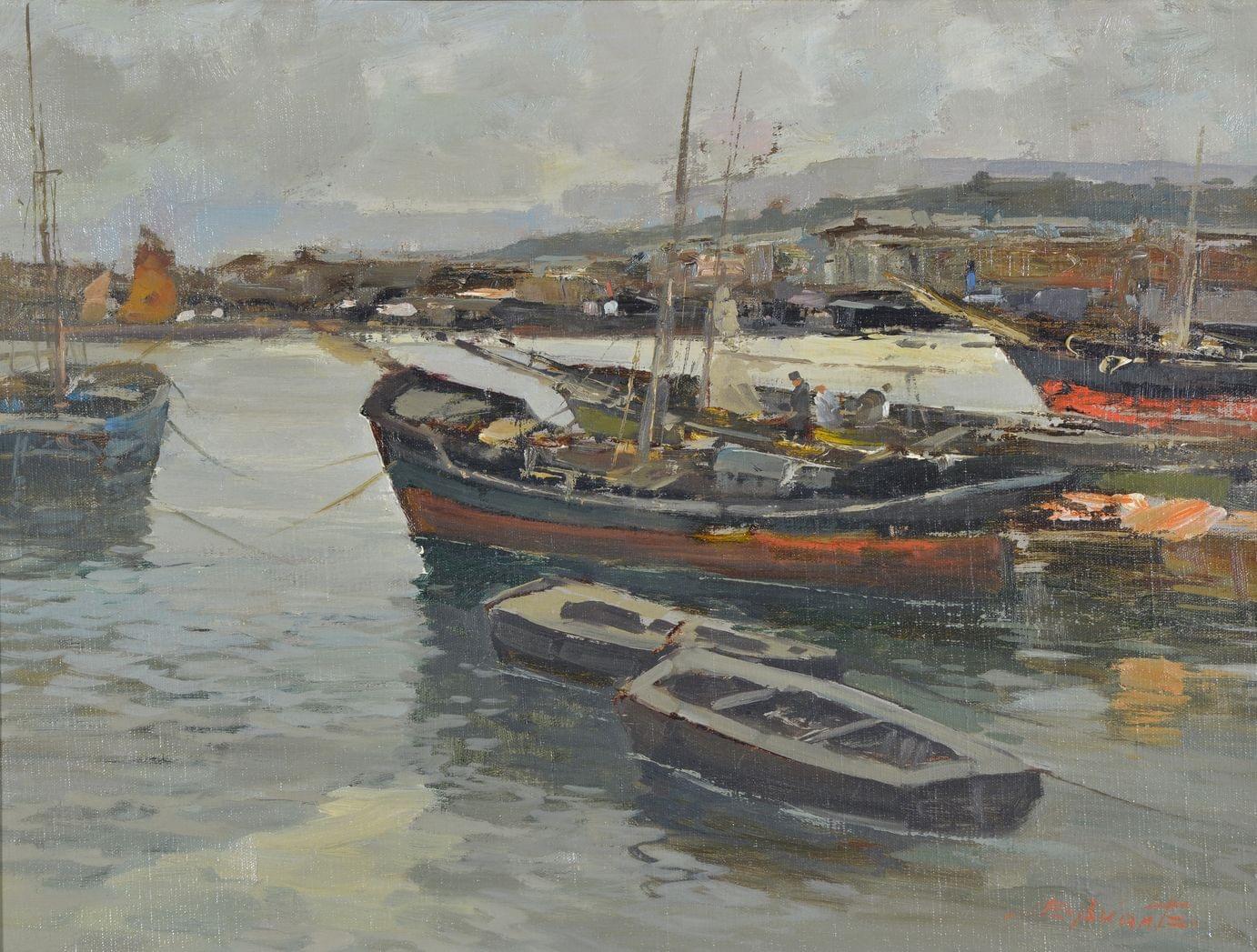 Scène de port italien, huile sur toile, signée, 29x39 cm