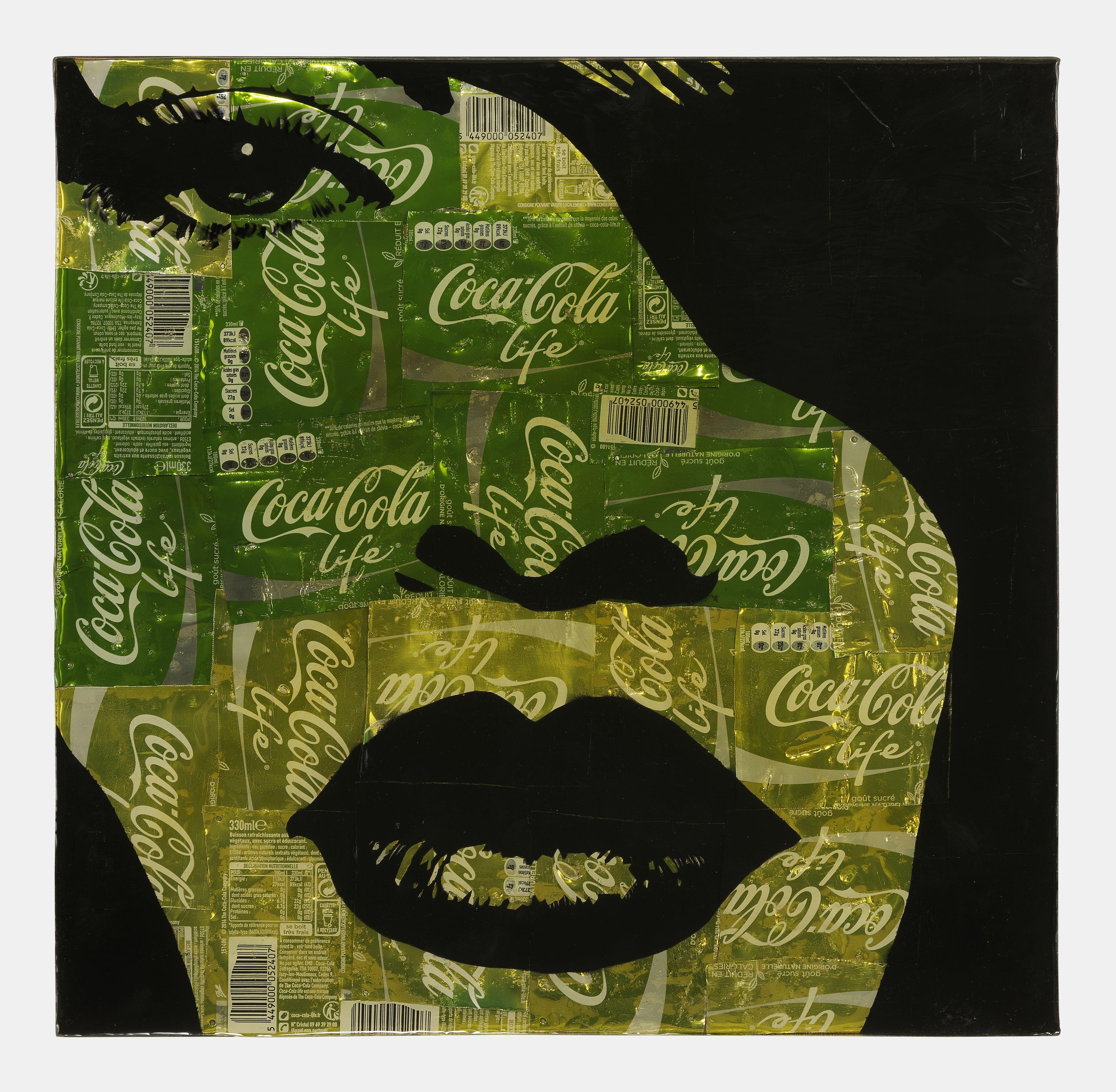 Brandbabes face Coca life, technique mixte, signée et datée 2015 au dos, 40x40 cm. On joint le certificat d'authenticité de la galerie Urban Gallery Paris.