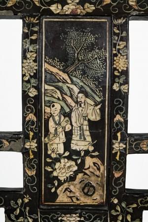Laque de coromandel à décor de scènes animées et motifs floraux