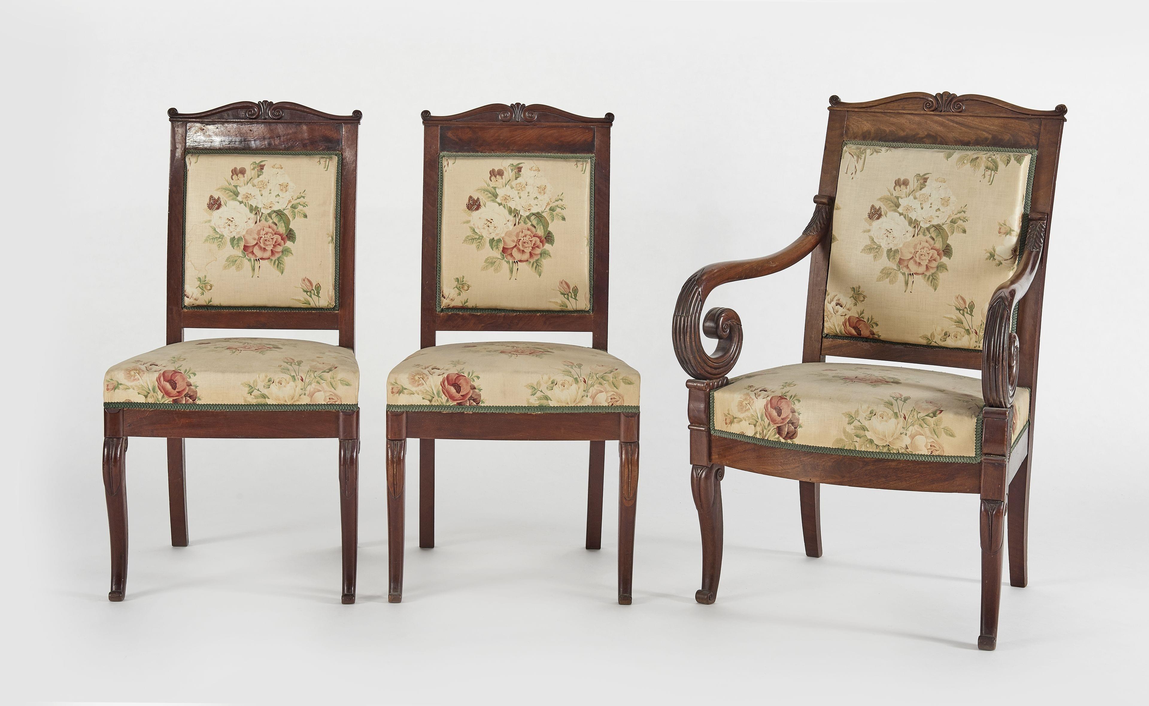 4590. Fauteuil et paire de chaises d'époque Restauration