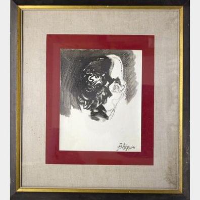 Taureau en haut de l'escalier, marqueur rouge sur papier, signé,...