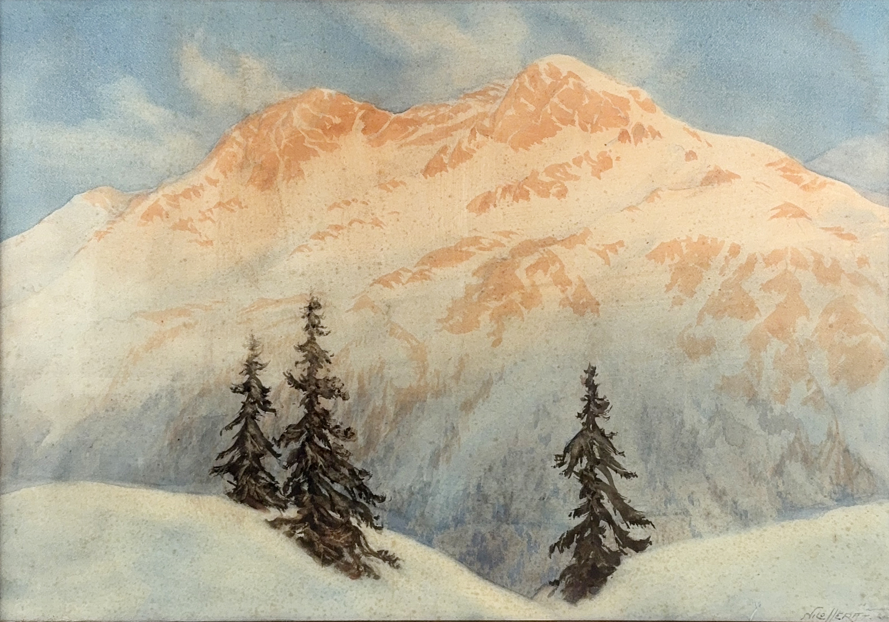 Paysage alpin, aquarelle sur papier, signée, 49x65 cm