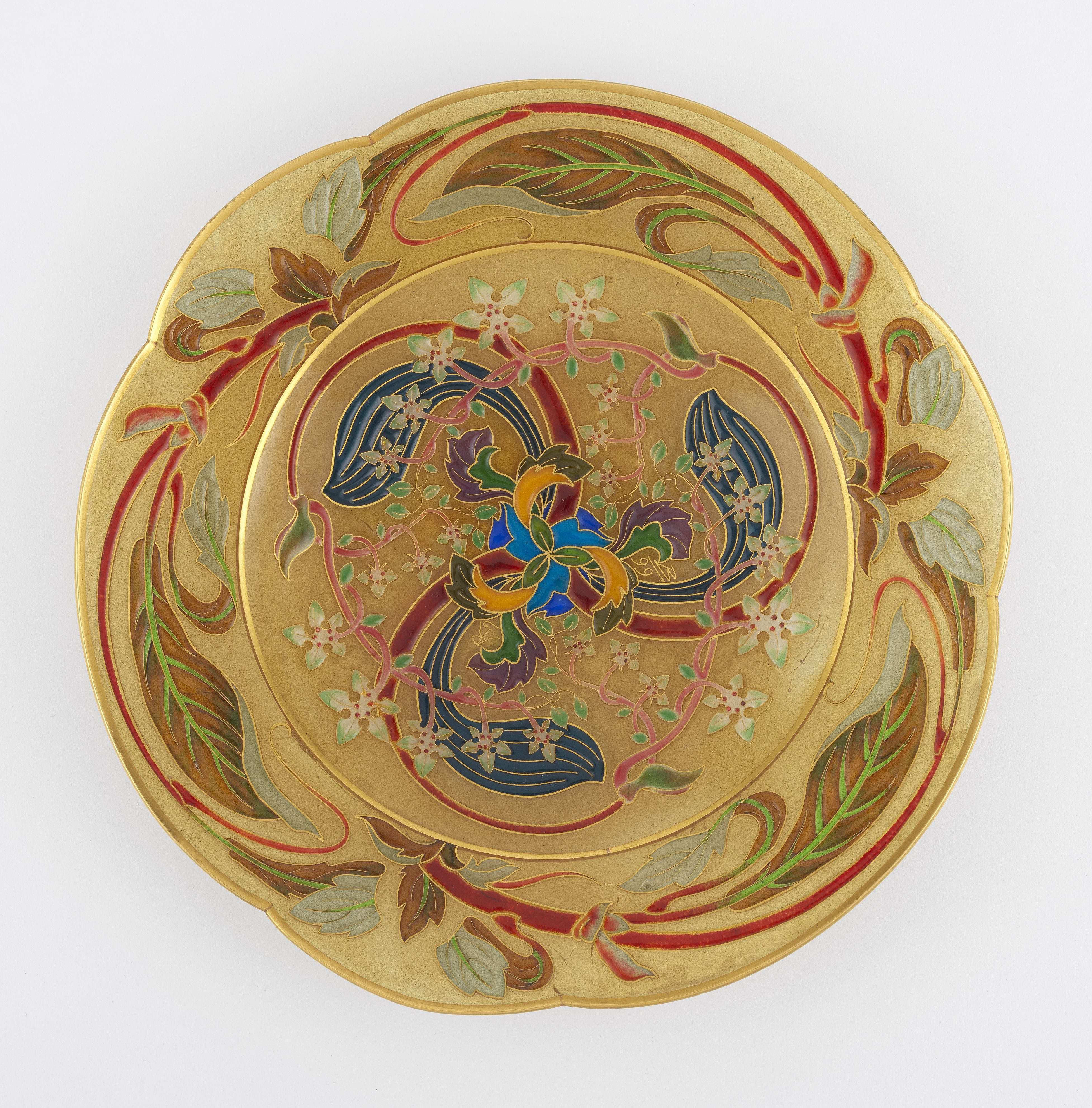 Coupe à bord festonné en émaux plique-à-jour sur résille et mont...