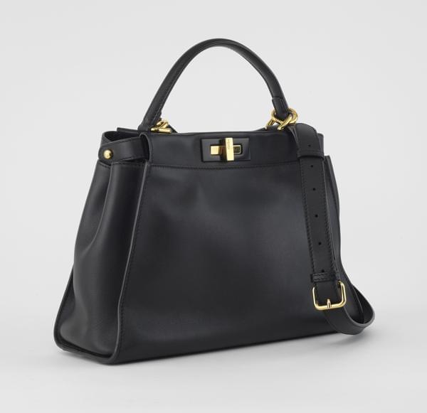 Cuir de veau noir et surpiqûres, garniture en métal doré, fermoi...