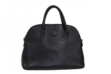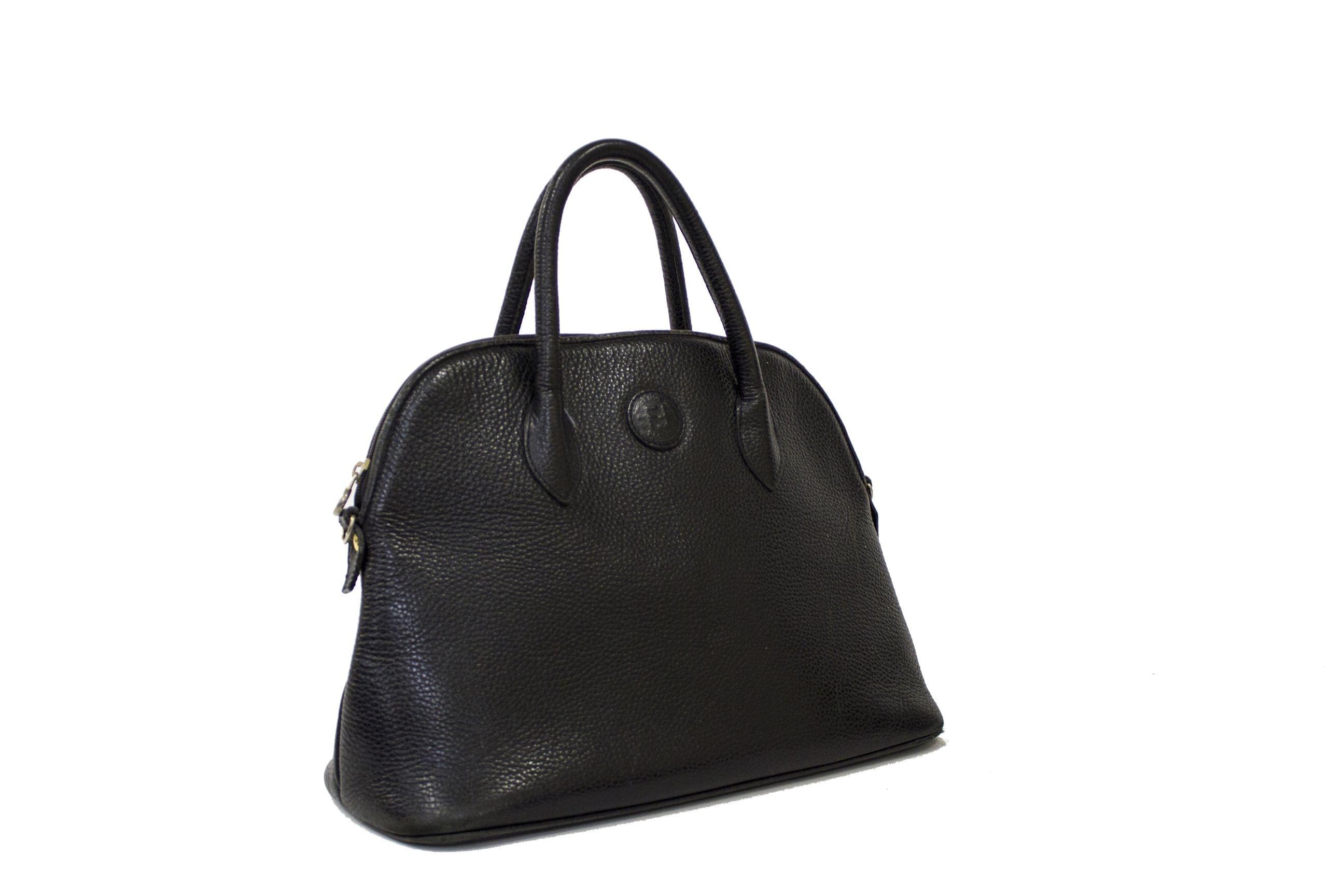 Cuir lisse bleu marine, garniture en métal doré, 23x32x13 cm