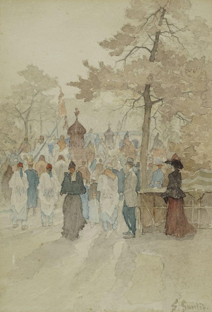 Scène de rue, aquarelle, signée, 32x22 cm