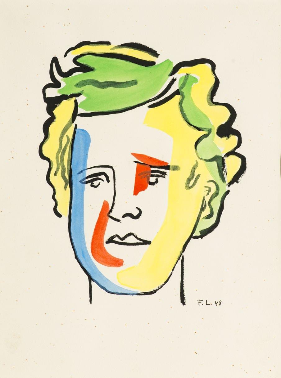 Portrait d'Arthur Rimbaud, lithographie rehaussée au pochoir, monogrammée et datée 48 dans la planche, 33x25,5 cm