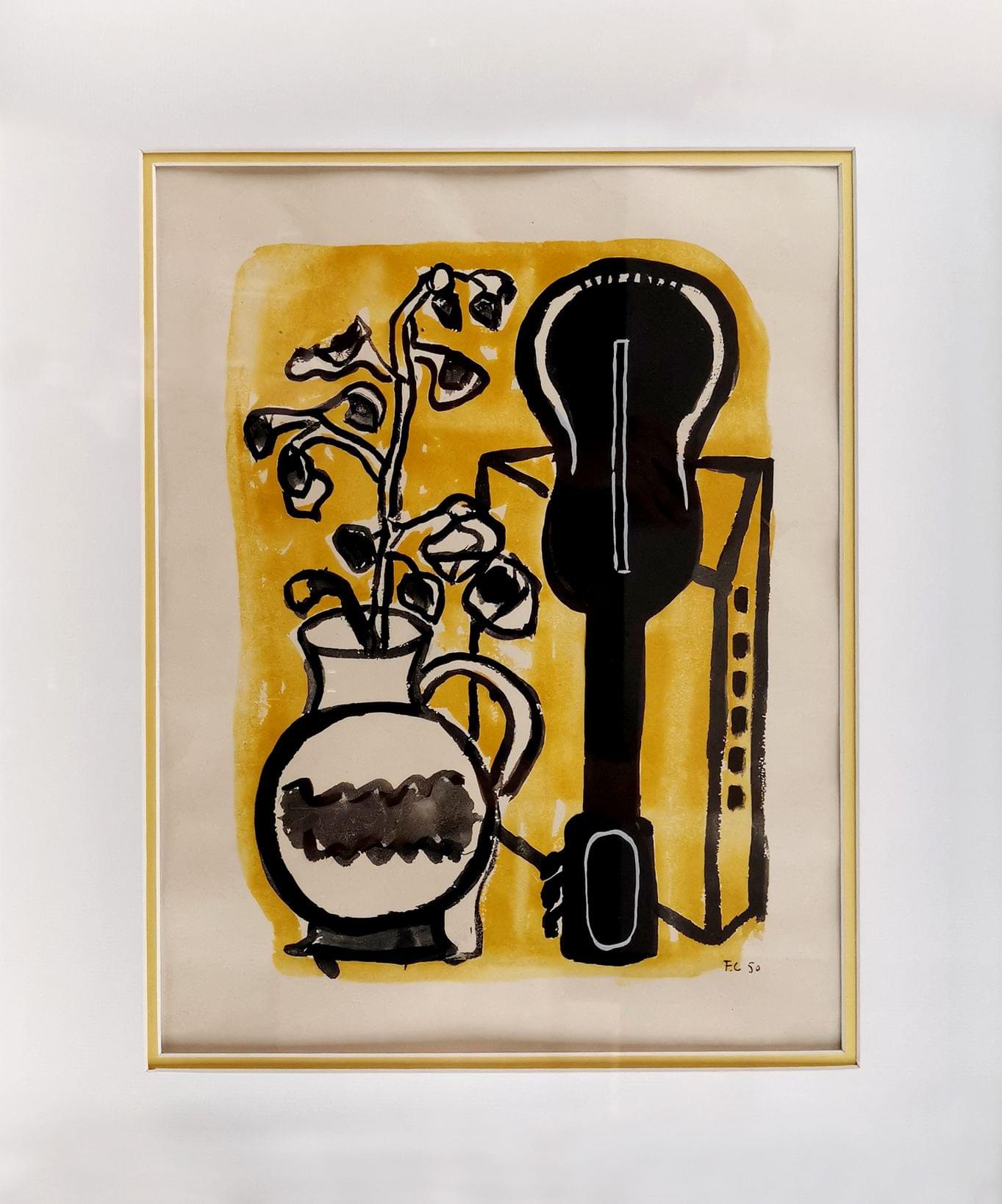 Vase et Mandoline, lithographie, monogrammée et datée 50 dans la planche, 38x28 cm