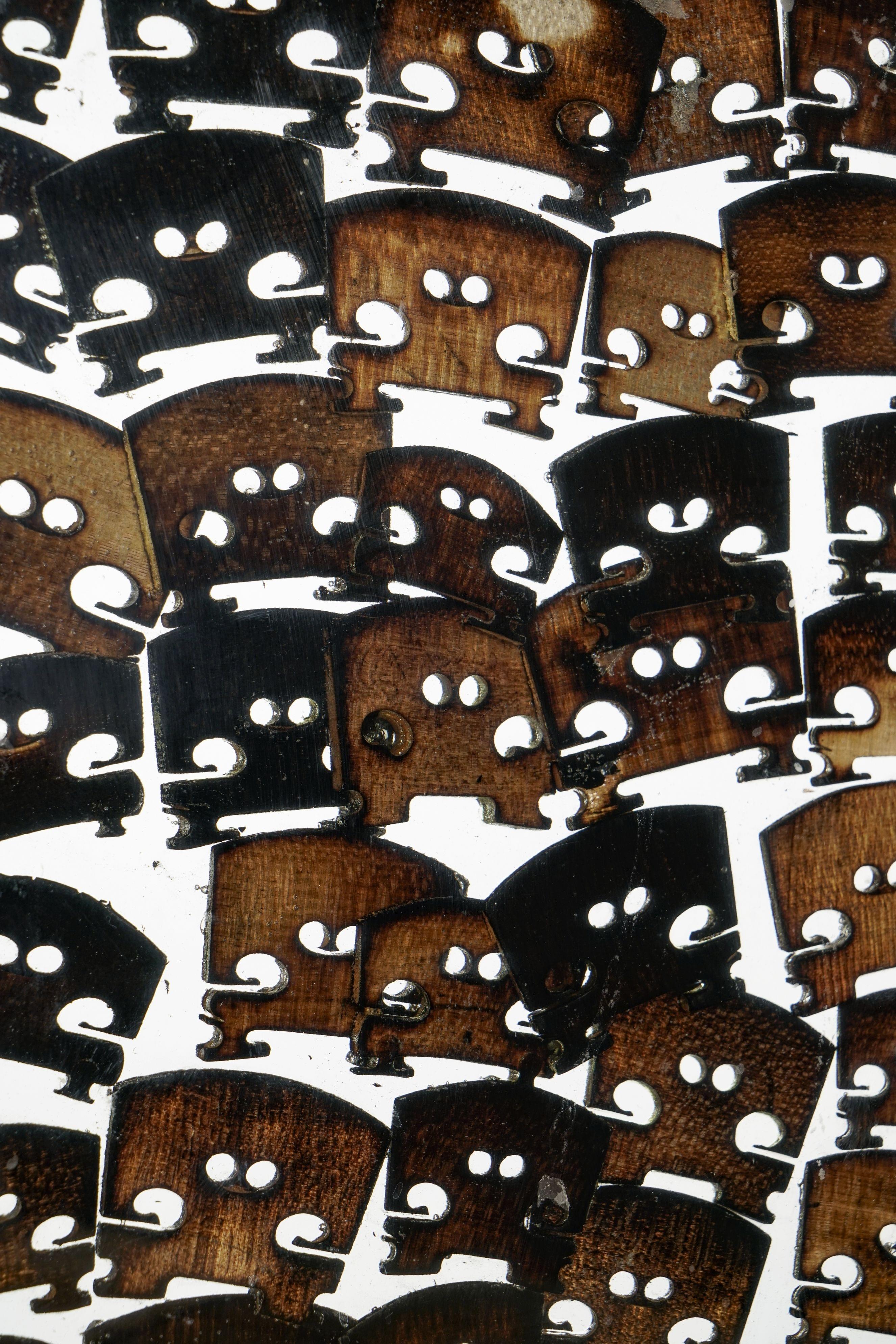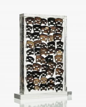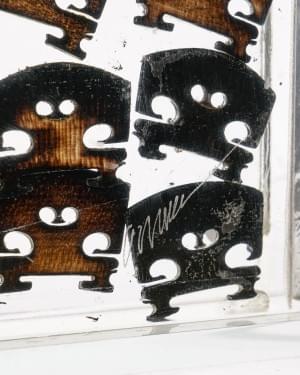 Accumulation de chevalets de violons inclus dans du plexiglas, signé et numéroté HC 2/10, H 42 cm. Collection B. de Saussure