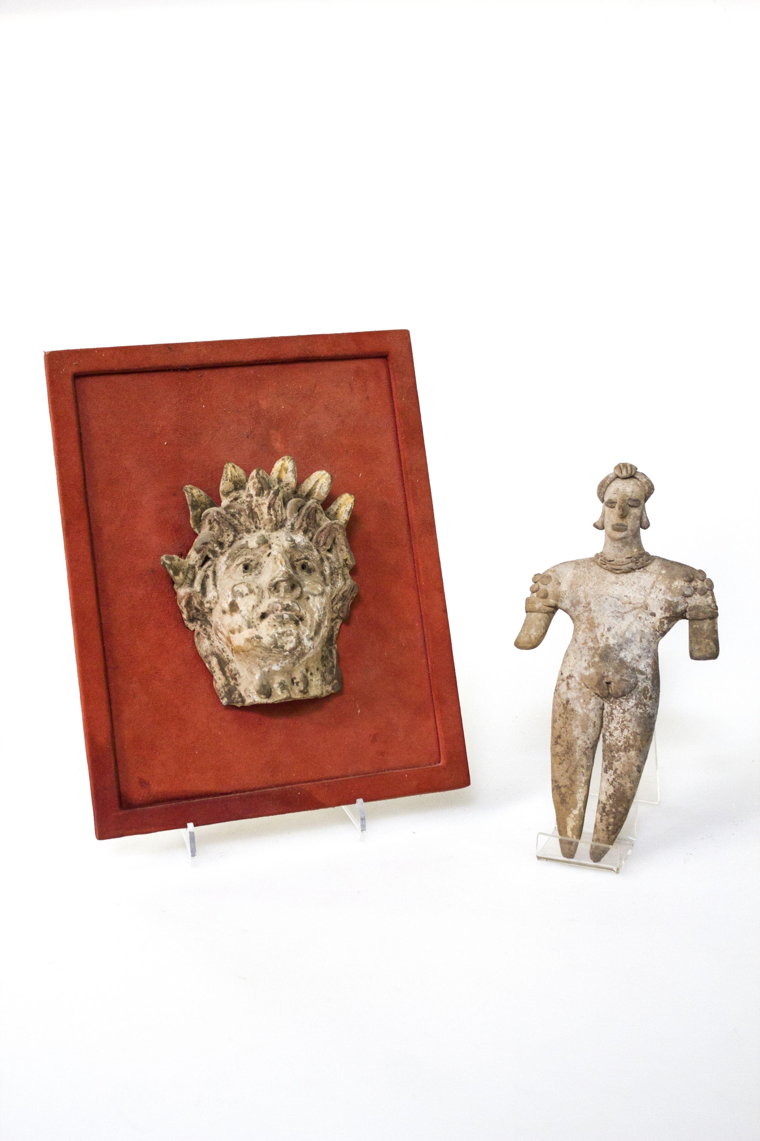Deux figures en terre cuite, H 12 et 18 cm. Collection B. de Saussure