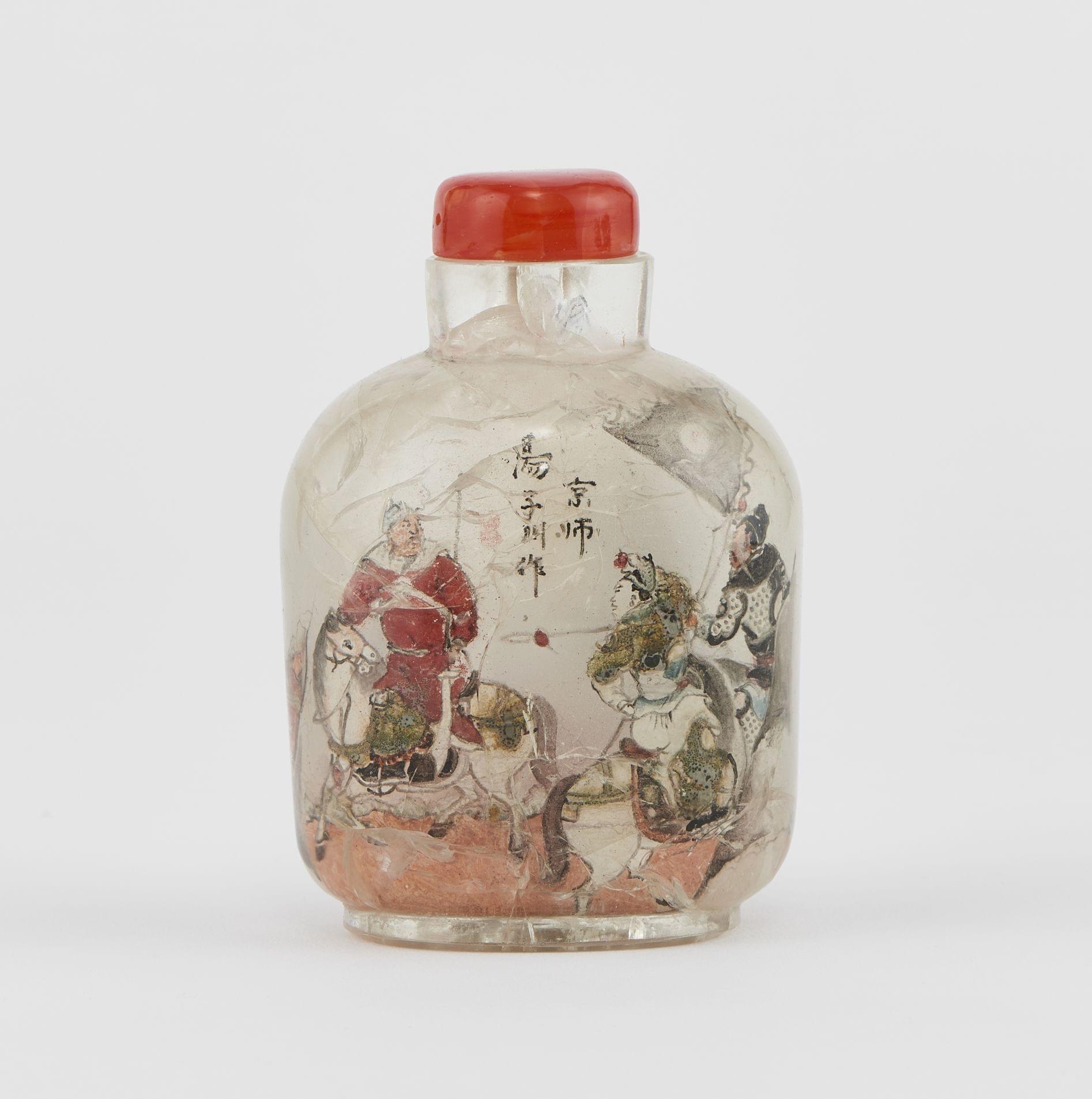 Cristal de roche peint à l'intérieur à décor de scènes avec des guerriers, H 8 cm.