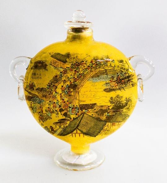Verre, intérieurs peints à décor de bambous, signées, Chine, H 1...