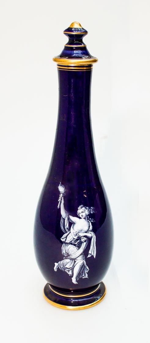 Céramique émaillée bleue sur fond craquelé à décor de fleurs, ma...