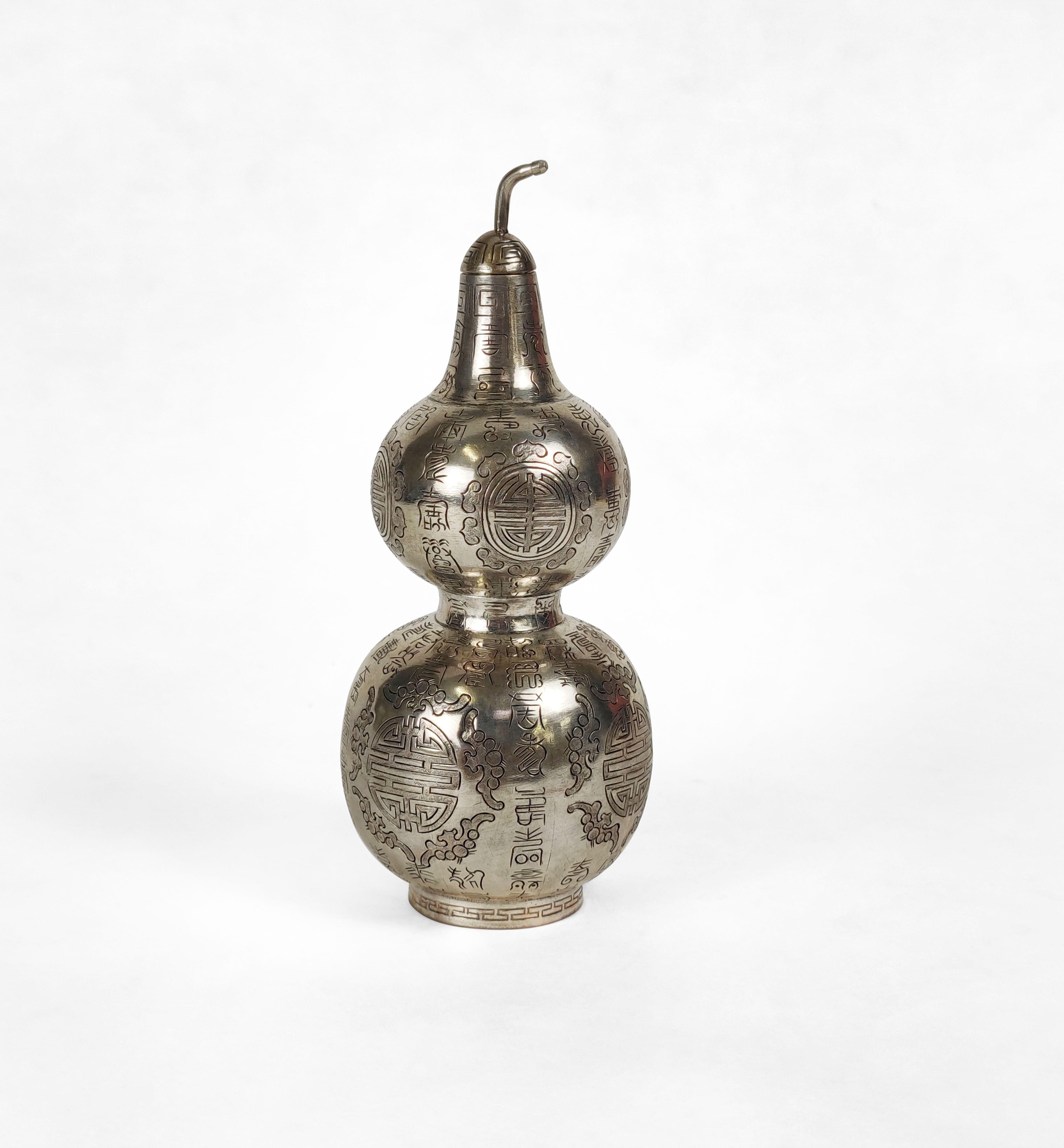 Argent à motif de calligraphies, H 18 cm, 210 g