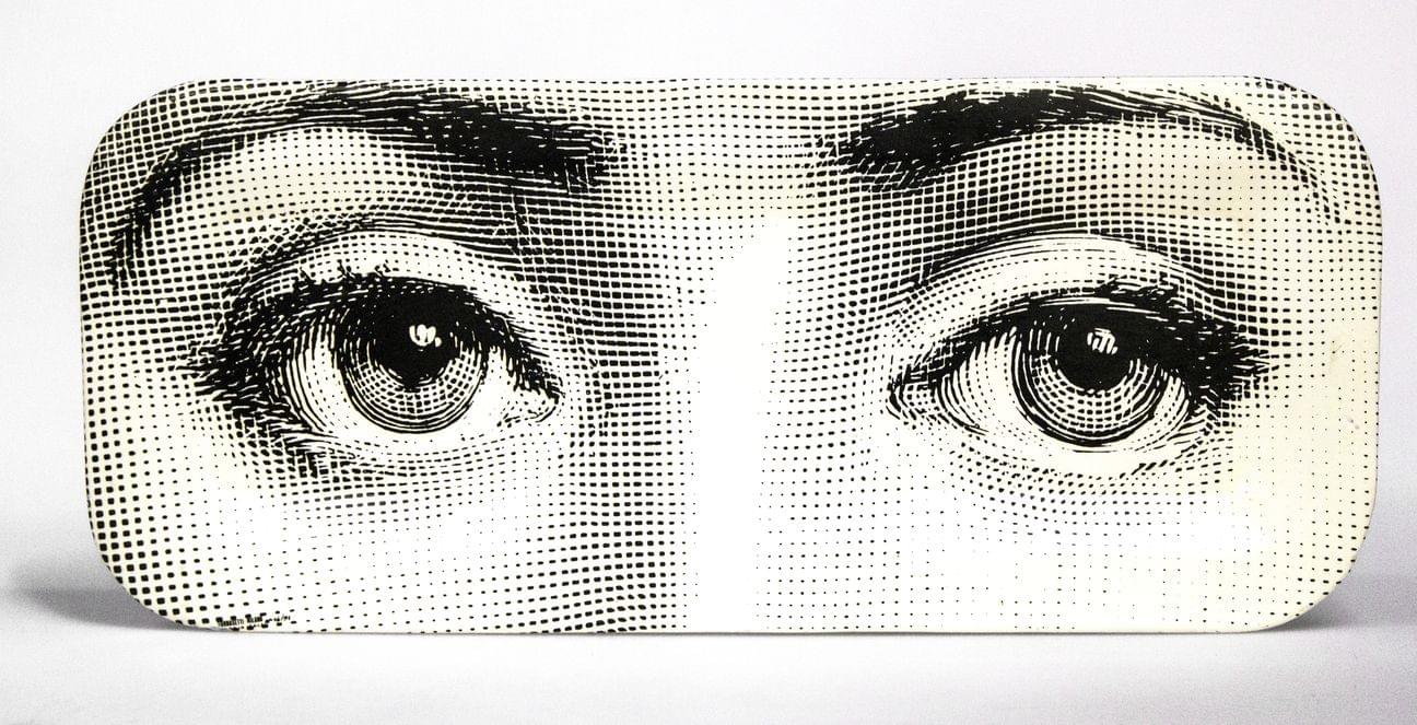 Plateau rectangulaire, tôle lithographiée, signé et numéroté 16/9, 59x25 cm