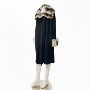 Laine et cachemire noirs, col et manchons en chinchilla, fermetu...