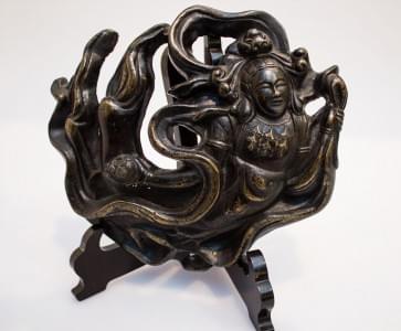 Décor appliqué d'émail rouge sur laque noire, éd. Limitée, colle...