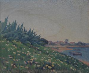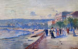 Promenade au bord du lac, pastel sur papier marouflé sur toile,...