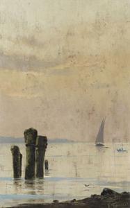 Voilier sur le lac Léman, huile sur carton, signée, 28,5x18 cm