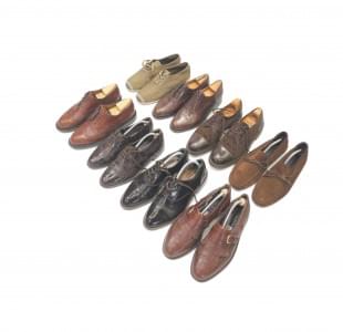 Cuir, daim et croco marron, T 39-40,5. Provenance: collection Pe...
