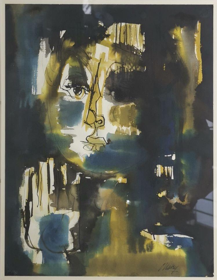 Visage, aquarelle sur papier, signée, 41x33 cm