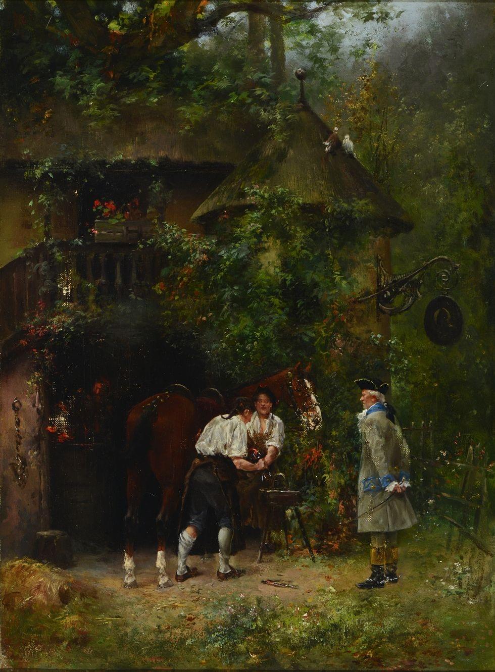 La halte, huile sur toile, signée, 30x26 cm. Provenance: galerie...