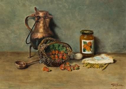 Nature morte aux fraises et nature morte aux harengs, paire d'hu...